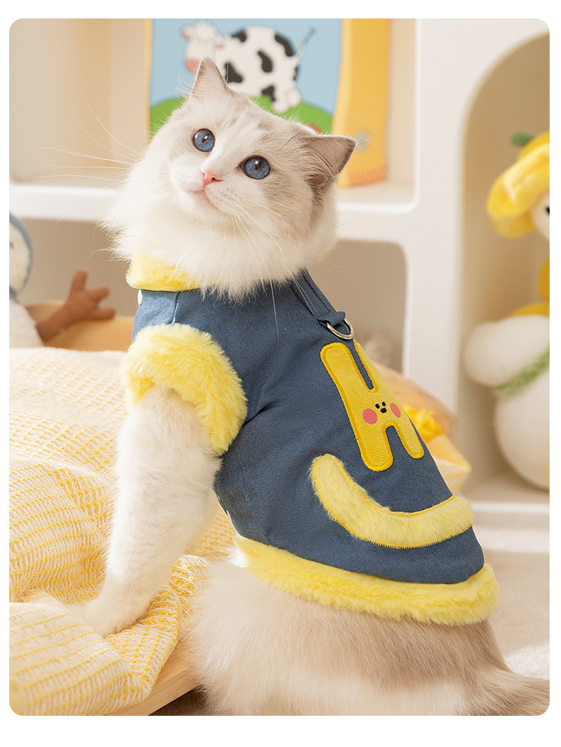 고양이 가을과 겨울 따뜻한 머리없는 고양이 데님 패션 조끼 면 옷 중소 개 애완 동물 옷