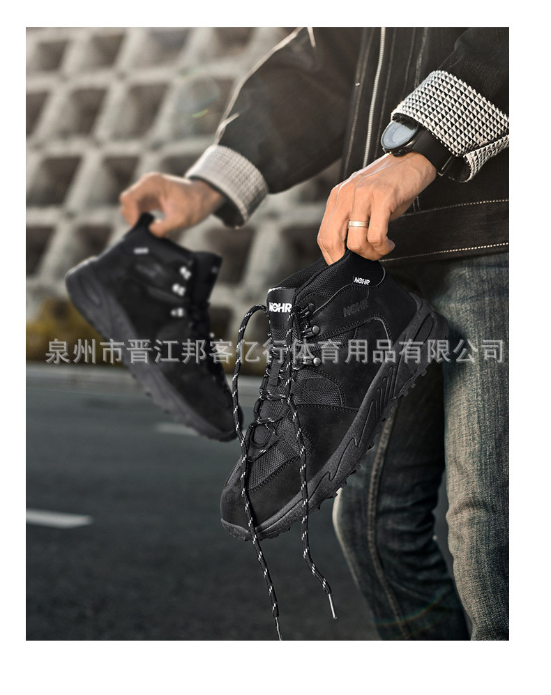 남성 신발 가을, 겨울 하이 탑 두꺼운 밑창 스포츠 및 레저 야외 하이킹 신발 남성용 미끄럼 방지 내마모성 대형 모래 방지 작업복