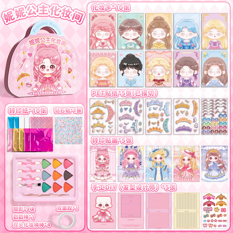 높은 뷰티 가치 공주 메이크업 가방 어린이 DIY 메이크업 책 몰입 형 장난감 스티커 소녀 장난감 생일 선물
