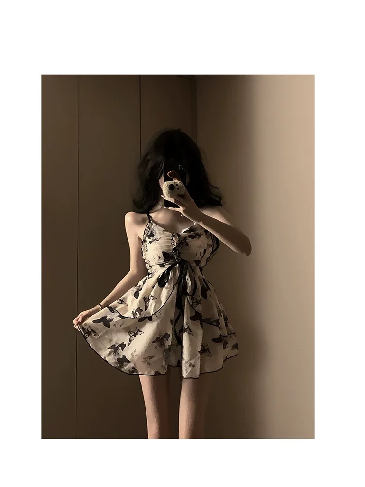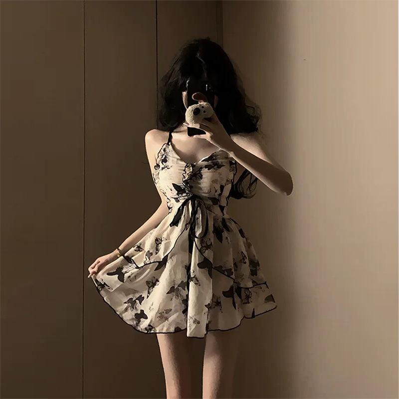 슬림 원피스 백리스 섹시한 해변 나비 스커트 스타일 여성의 불규칙한 수영복을 덮는 새로운 레트로 보수적 배꼽스토어 가기