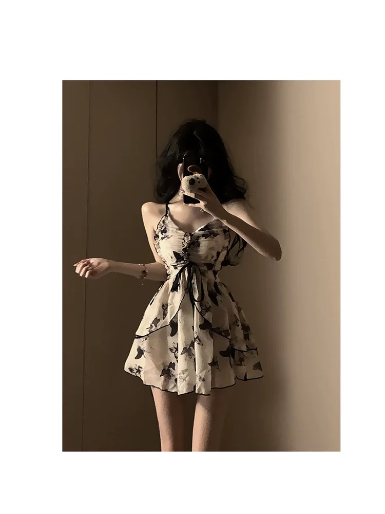 슬림 원피스 백리스 섹시한 해변 나비 스커트 스타일 여성의 불규칙한 수영복을 덮는 새로운 레트로 보수적 배꼽
