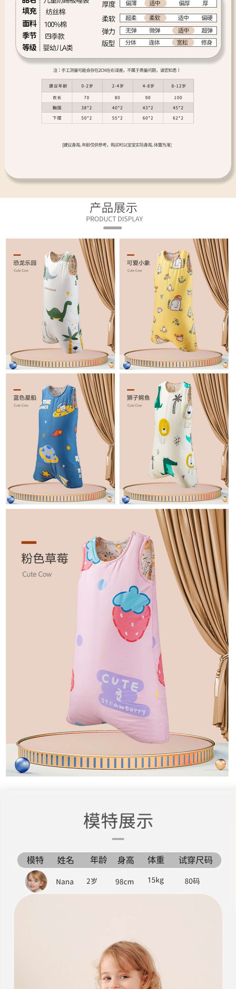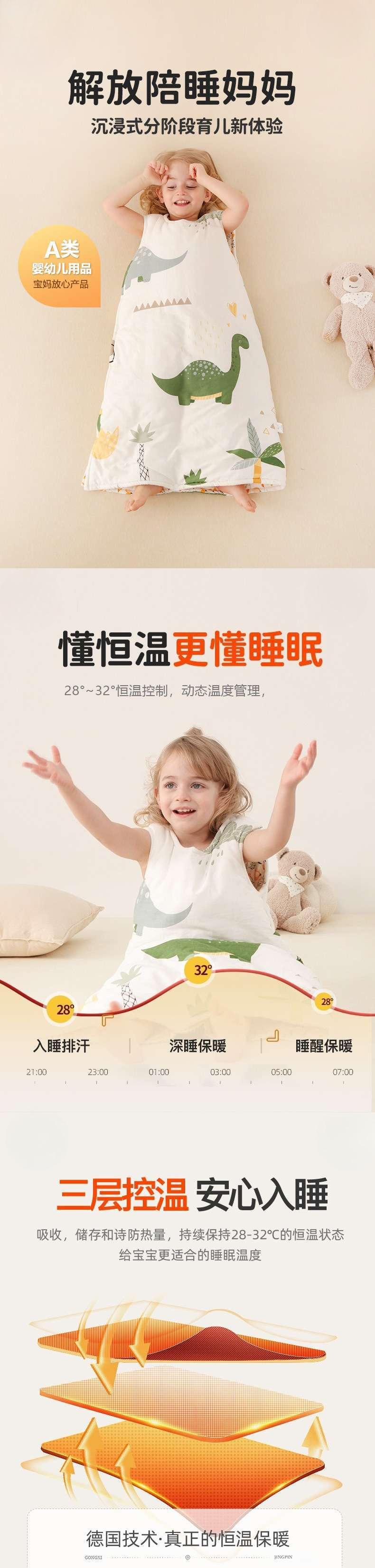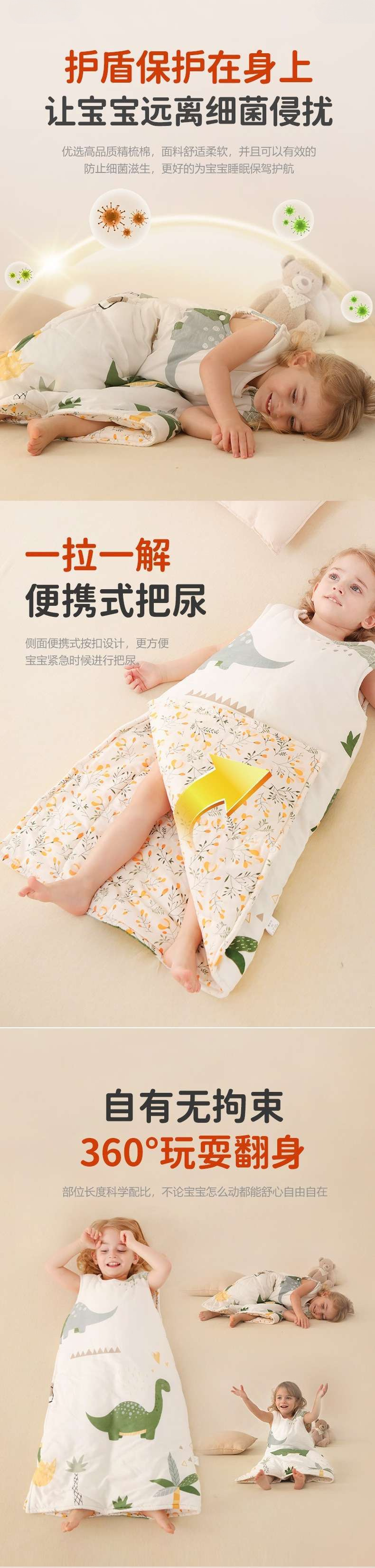 어린이 슬리핑 백 가을과 겨울 두꺼운 일정한 온도 중 큰 어린이 여름 에어컨 방 조끼 순수 코튼 킥 방지 퀼트 유물