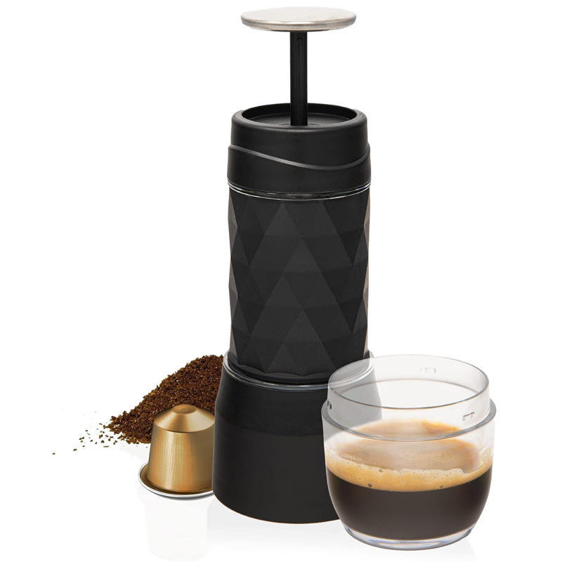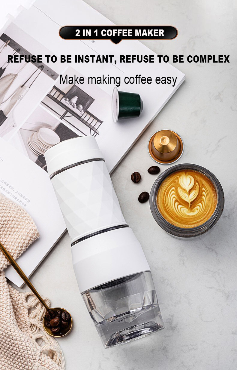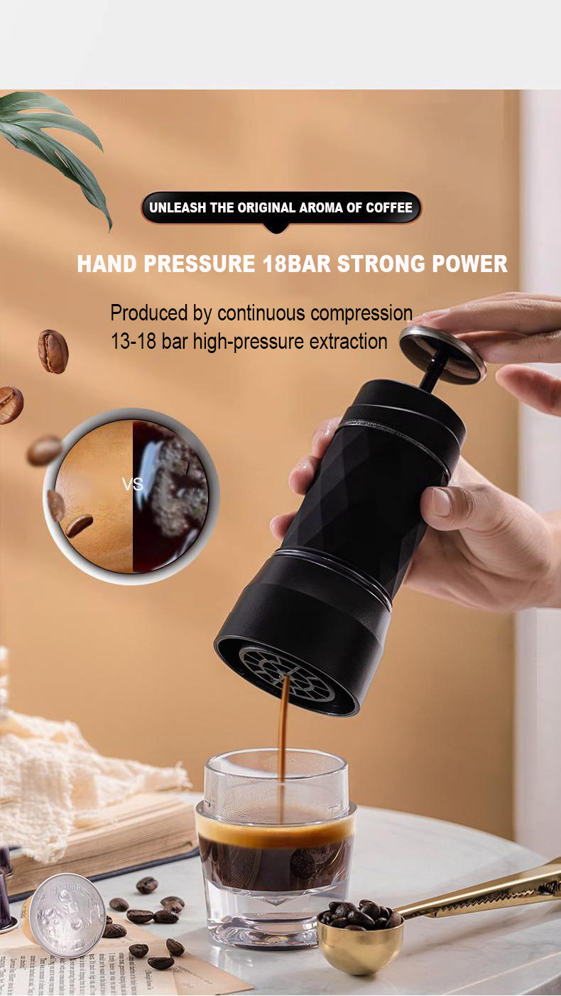 2 in 1 휴대용 수동 에스프레소 커피 머신 여행 캠핑 휴대용 커피 머신에 적합한 캡슐 커피 파우더와 호환 가능