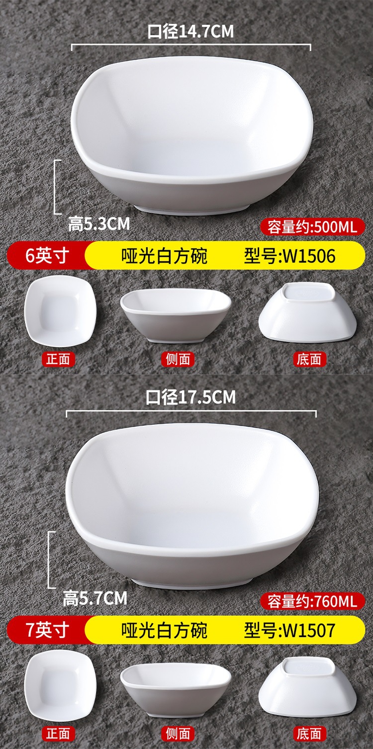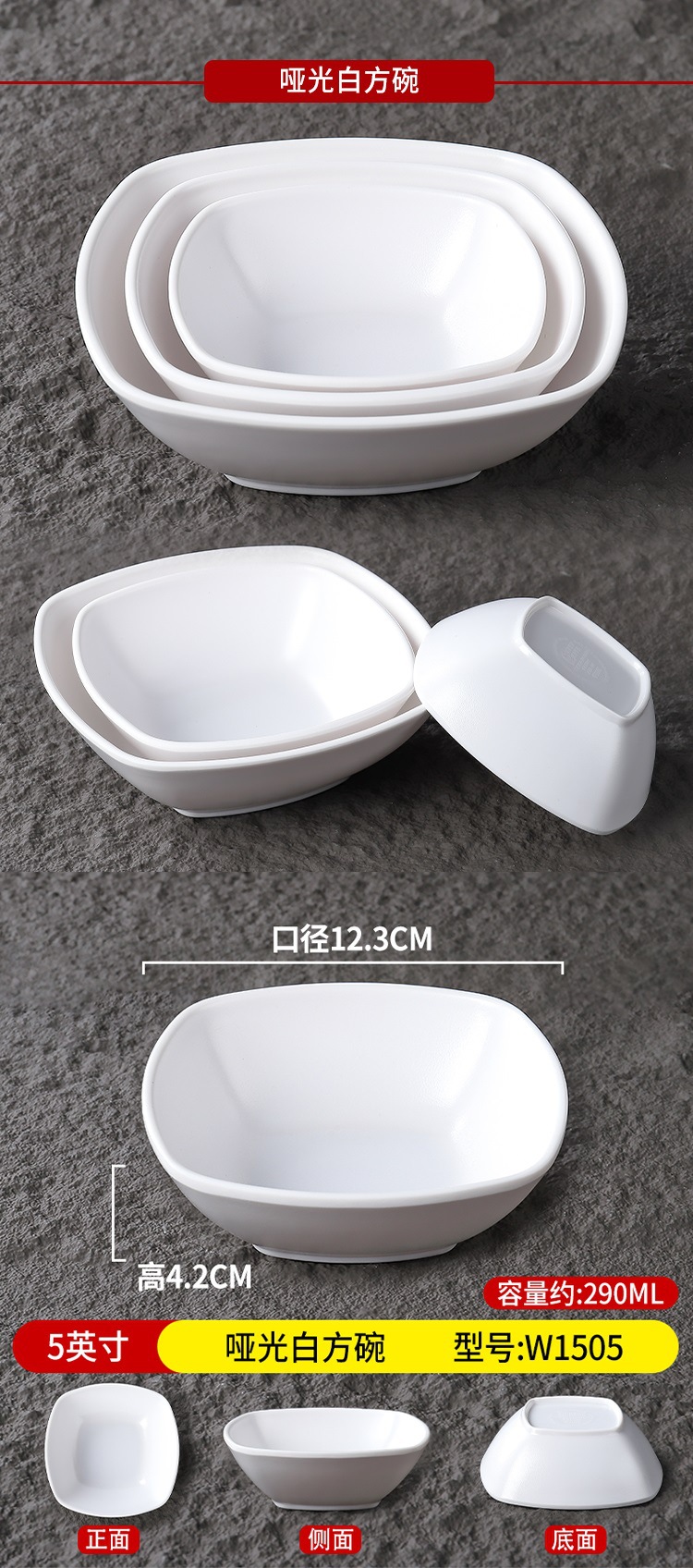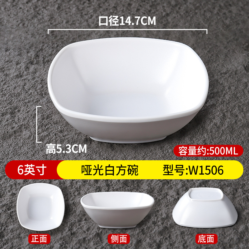 • 6inch 무광택 흰색 사각형 그릇 W1506
