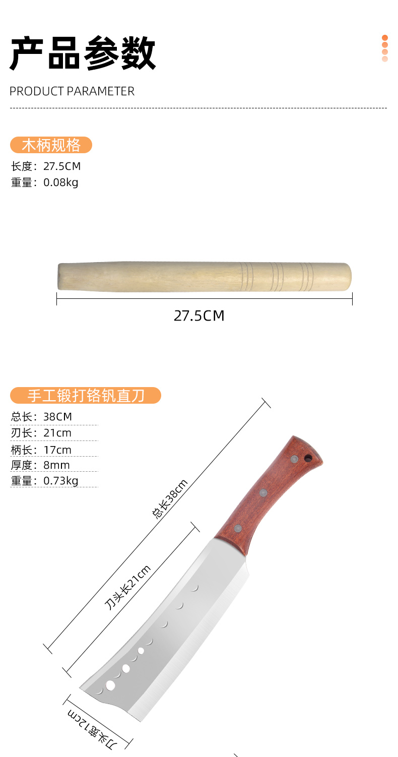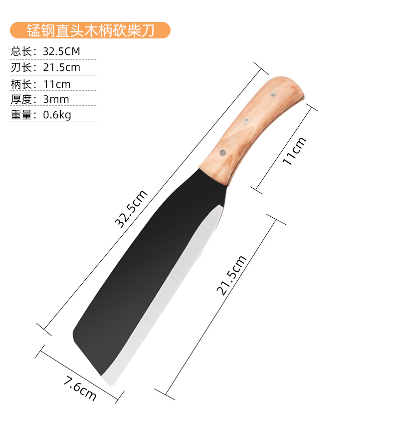 • 망간강 직선 나무 손잡이가 있는 일체형 나무 도마⭐롤링 블레이드 보상 보장-60°위-20cm