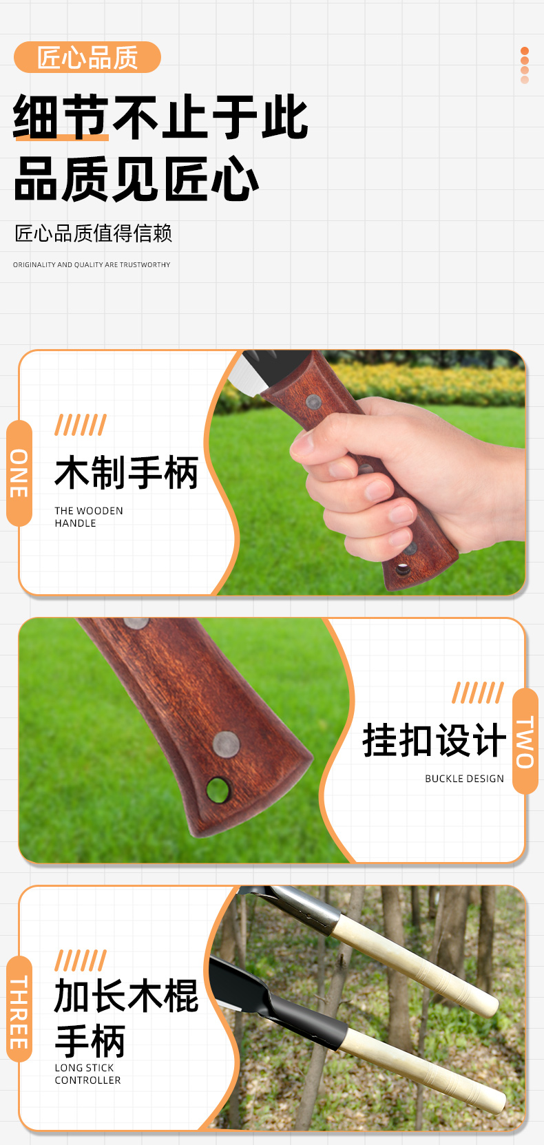 • 탄소강 두꺼운 직선 나무 도마 + 나무 손잡이-60°위-20cm
