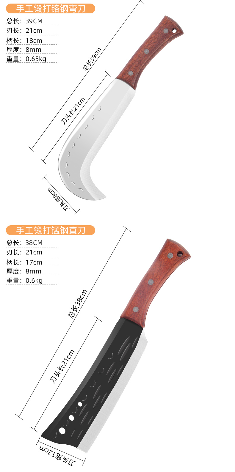 • 망간강 두꺼운 팔꿈치 도마⭐롤링 블레이드 보상 보장-60°위-20cm
