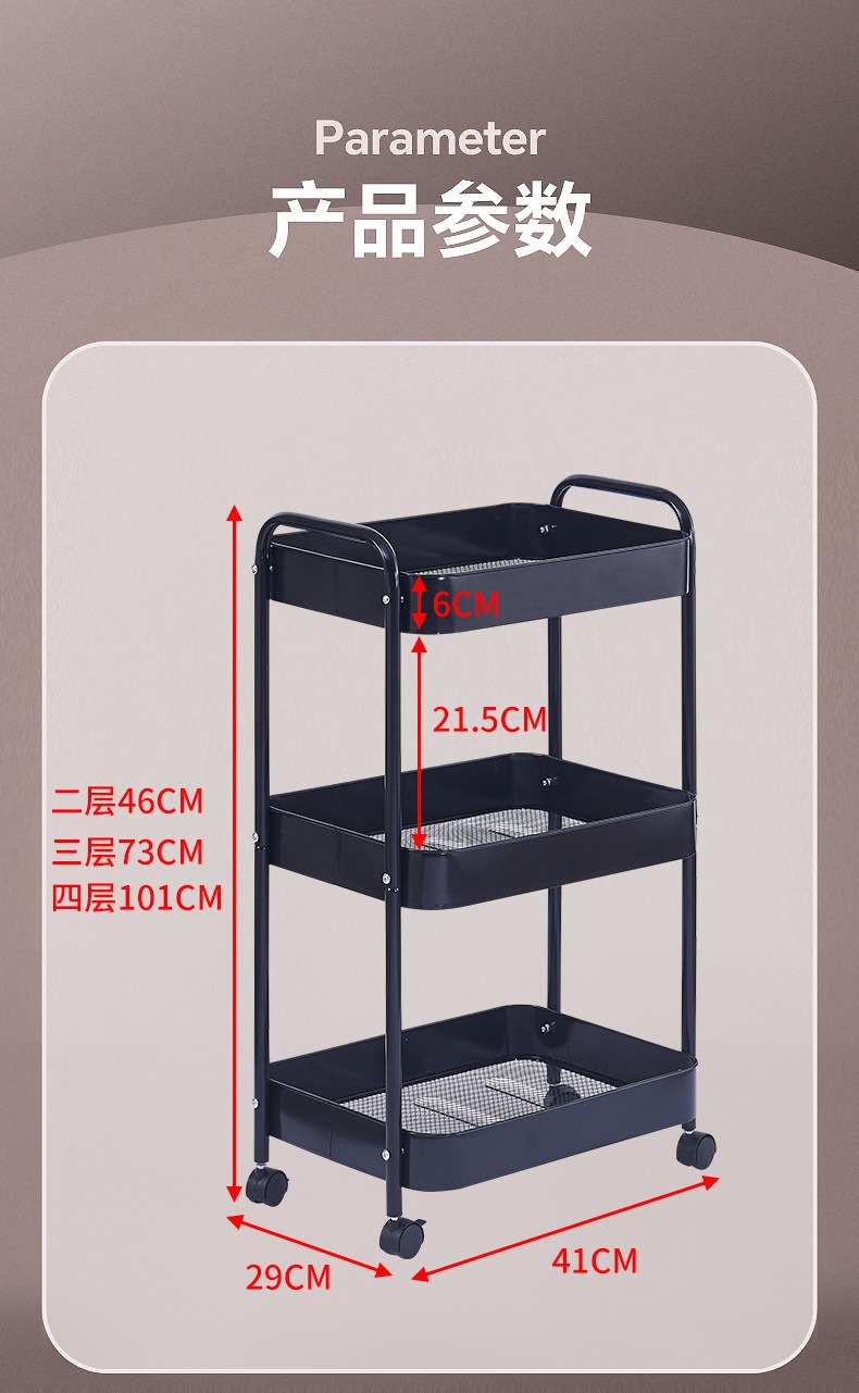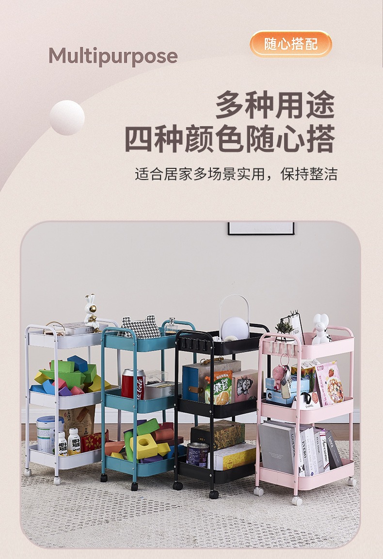 多层置物架定制落地洗手间卫生间卫浴客厅碳钢可移动置物架小推车