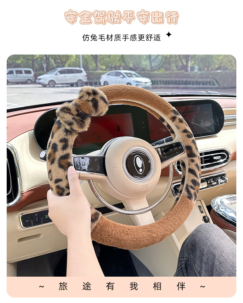 • 브라운 리본이 달린 토끼털 표범 무늬 투피스 스티어링 휠 커버