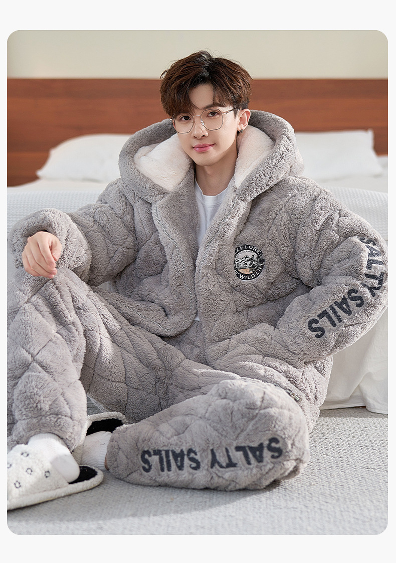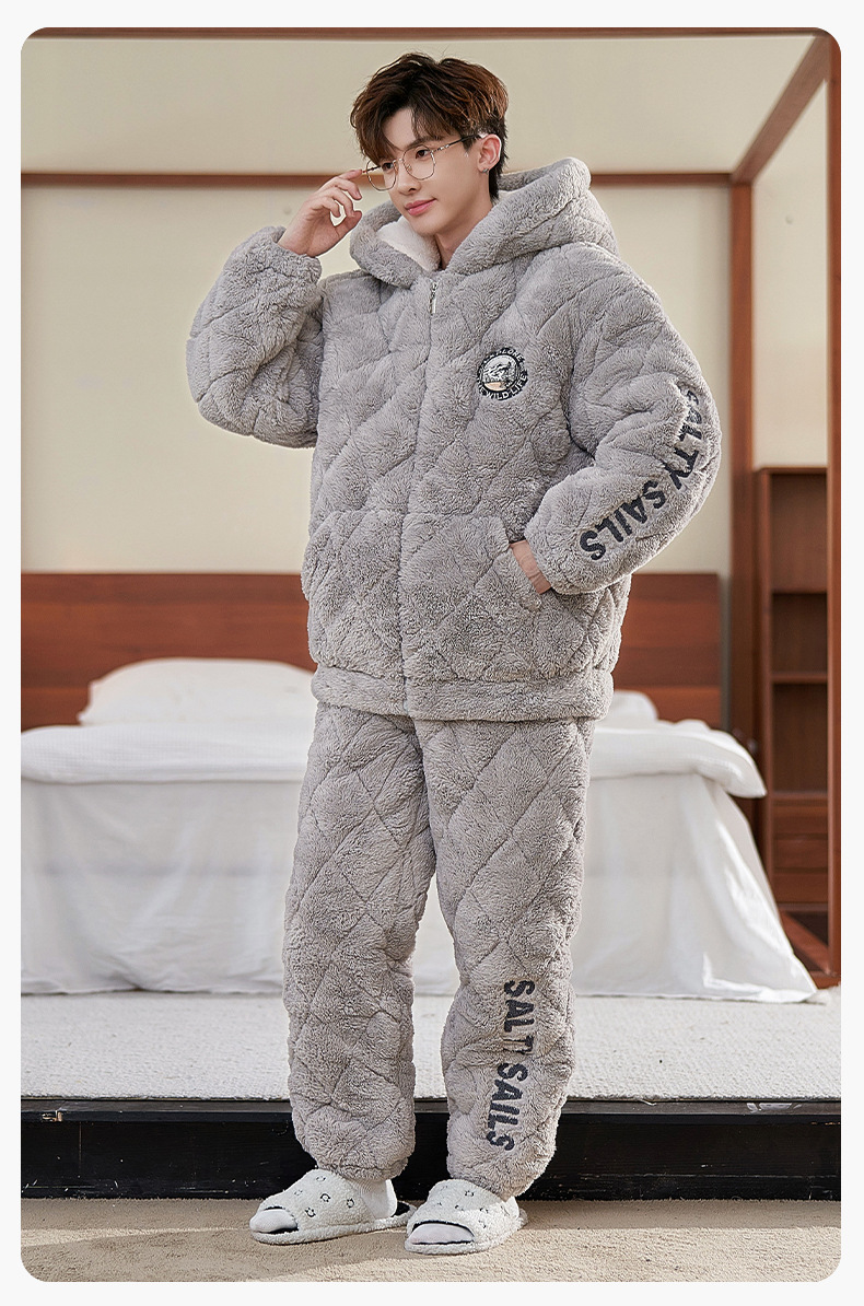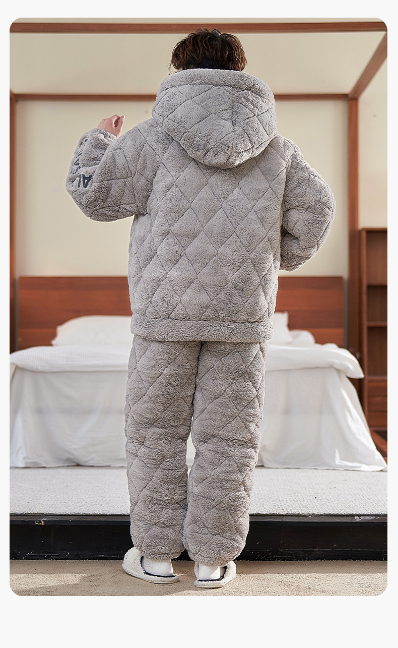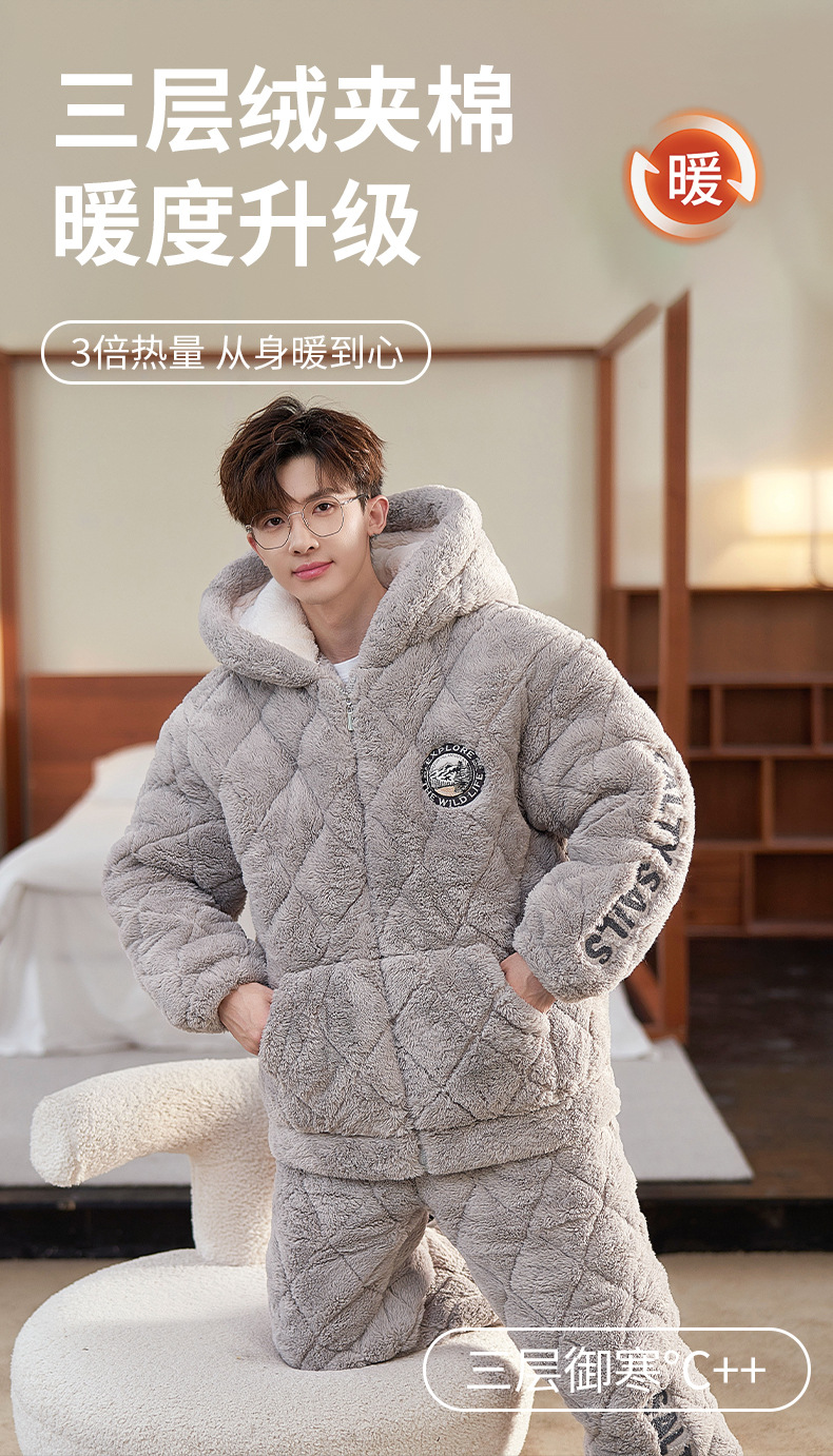 2024 새로운 남성용 두꺼운 코튼 패딩 재킷 따뜻한 3 층 퀼트 파자마 플러시 후드 지퍼