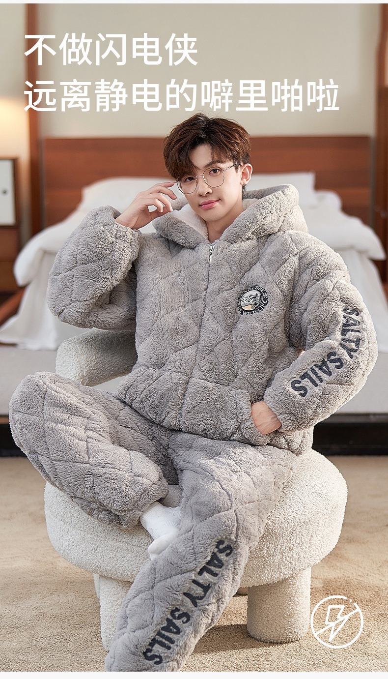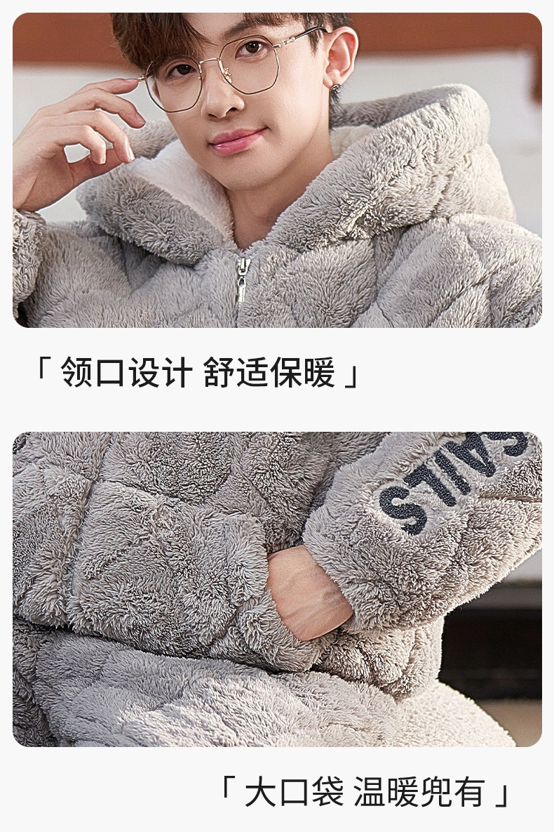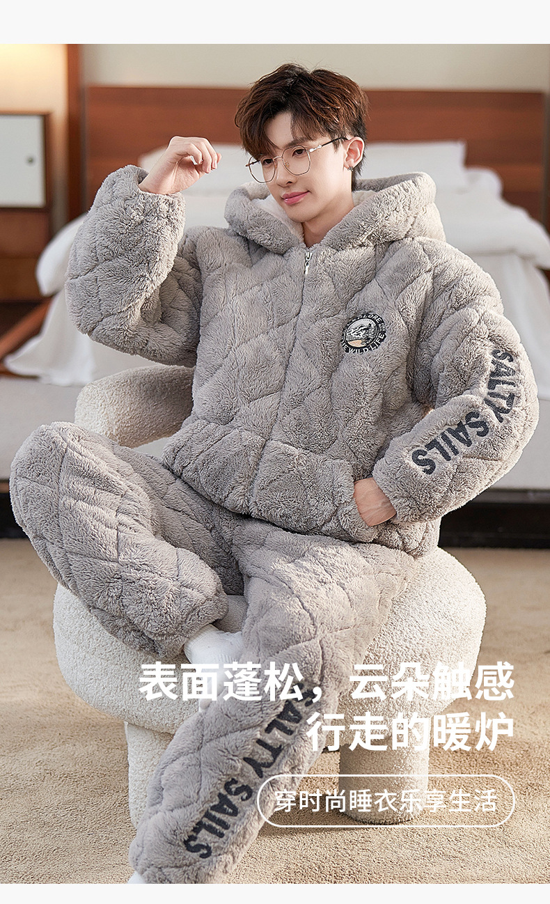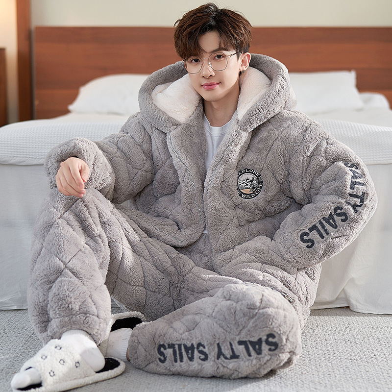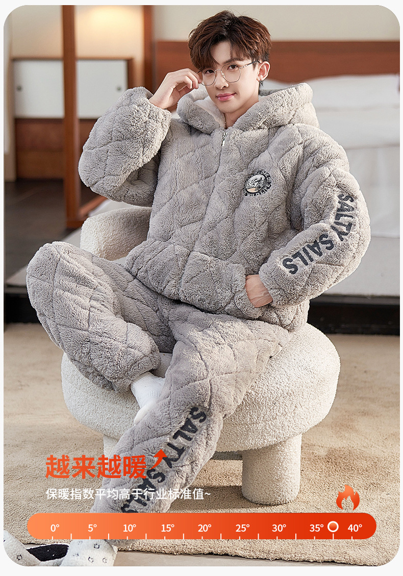 2024 새로운 남성용 두꺼운 코튼 패딩 재킷 따뜻한 3 층 퀼트 파자마 플러시 후드 지퍼
