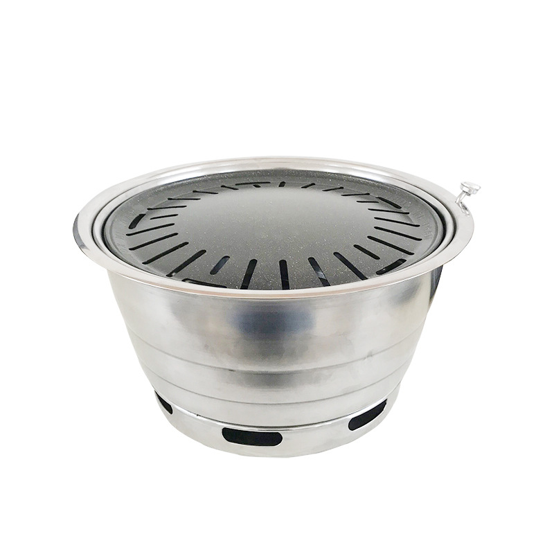 한국식 바베큐 스토브 숯불 스토브 상업용 무연 바베큐 팬 원형 스테인레스 스틸 오븐 상단 행에 상감 목탄 스토브스토어 가기