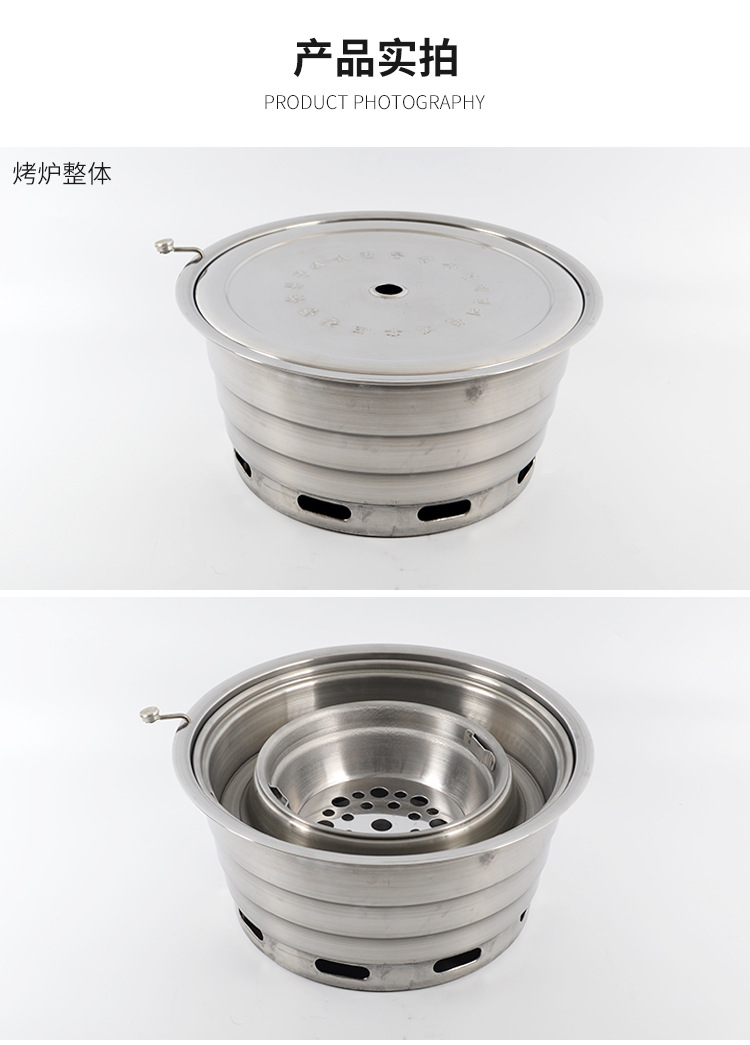 한국식 바베큐 스토브 숯불 스토브 상업용 무연 바베큐 팬 원형 스테인레스 스틸 오븐 상단 행에 상감 목탄 스토브