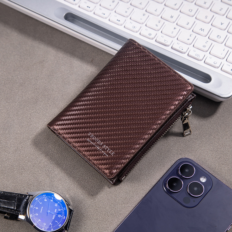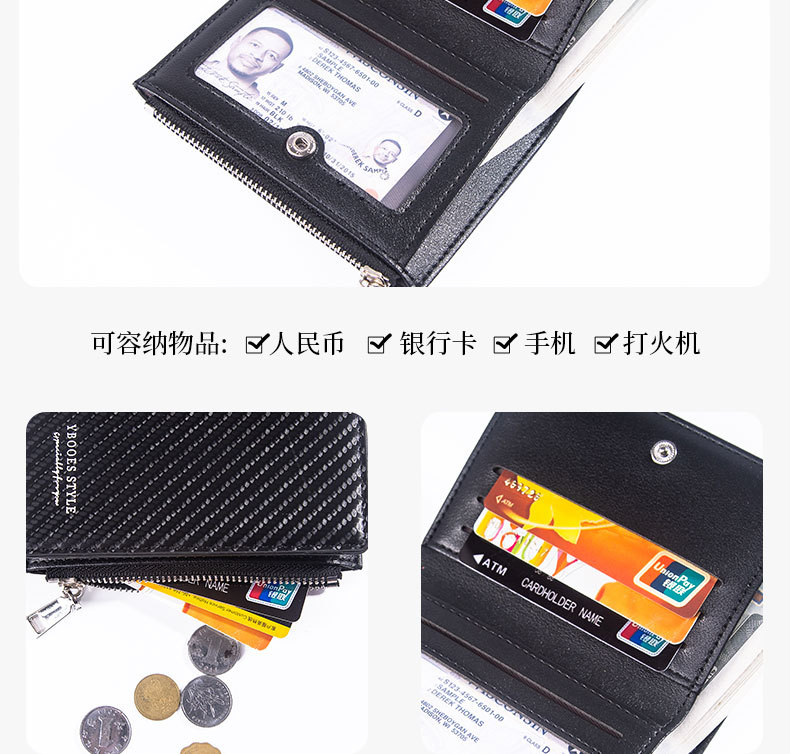 비즈니스 캐주얼 격자 무늬 남자 짧은 체인 지갑 오프닝 힌지 동전 지갑 멀티 카드 부서진 실버 가방 남성 지갑