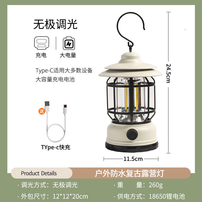 야외 캠핑 텐트 캠핑 led 분위기 레트로 랜턴 캠프 조명 긴 배터리 수명 매달린 충전식