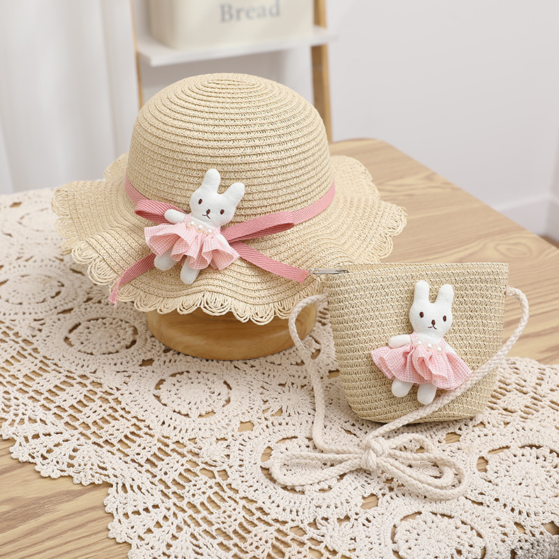 여름 아기 소녀 귀여운 토끼 밀짚 모자 어린이 야외 서양식 손으로 짠 통기성 신선한 그늘 모자