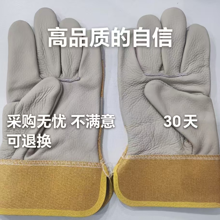 제조업체 도매 노란색 천 1층 손바닥 용접 장갑 용접공 아크 용접 내마모성 소가죽 고온 방지 노동 보호 및 화상 방지스토어 가기
