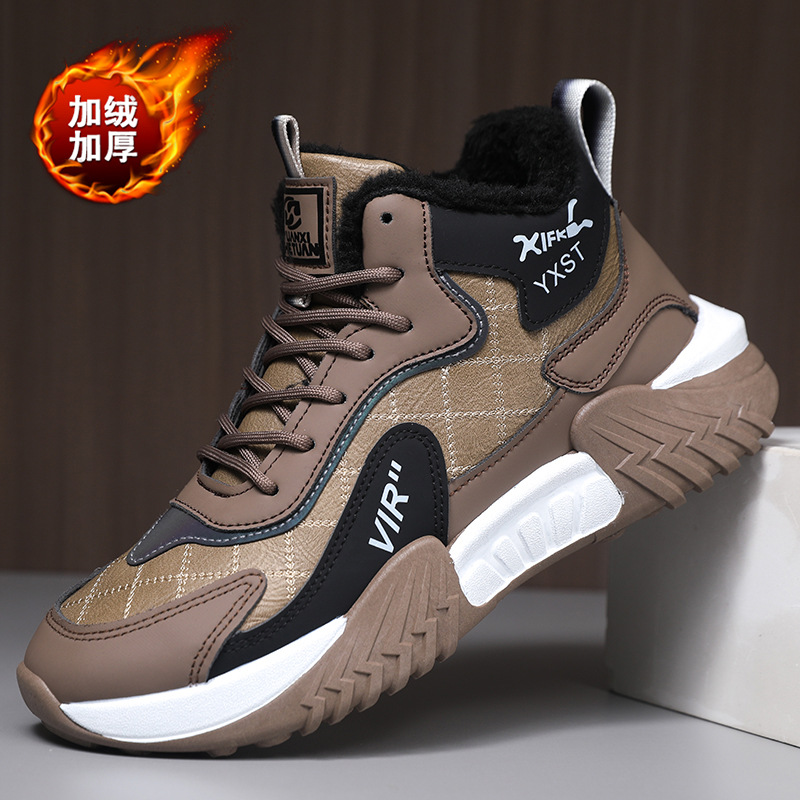 남자 신발 가을과 겨울 하이 탑 소프트 솔 미끄럼 방지 기모 운동화 모든 경기 편안한 두꺼운 단독 경량 캐주얼 러닝 남성용 트렌디 신발스토어 가기