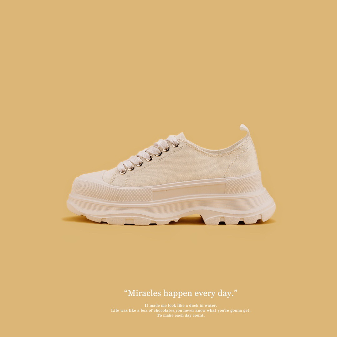 Putian Shoes 새로운 3 세대 Mu McQueen 캔버스 화이트 신발 증가 두꺼운 단독 캐주얼 올 매치 인터넷 Celebrous Hot Women's Platform스토어 가기
