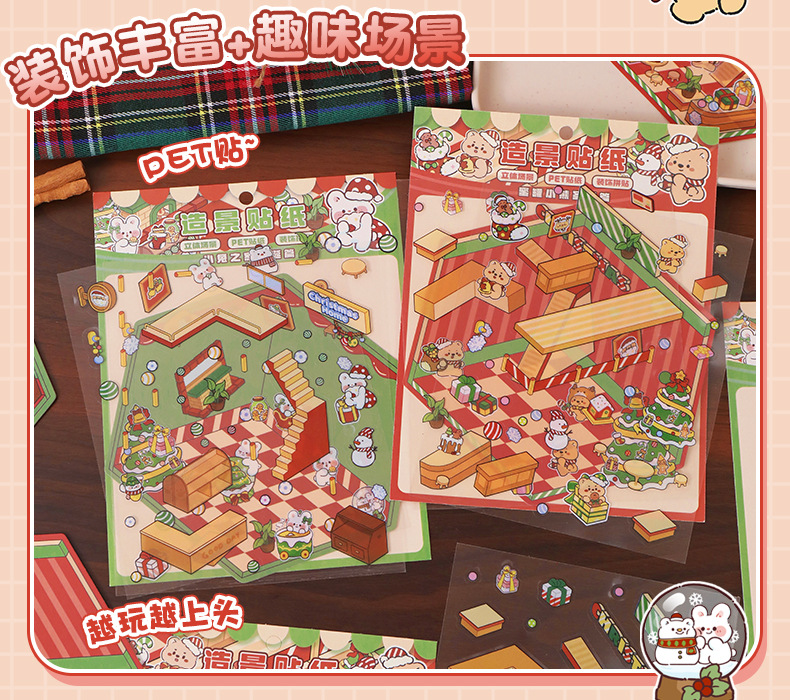 크리스마스 조경 스티커 창조적 인 3D 입체 오두막 만화 미니어처 장면 스티커 어린이 수제 장난감 스티커스토어 가기