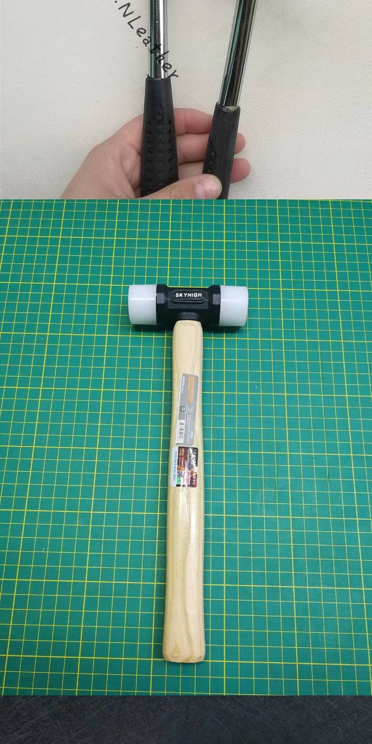 더블 헤드 고무/나일론 해머 수제 가죽 조각 망치 나무 손잡이 스틸 파이프 핸들 히트 절단 히트 설치 도구