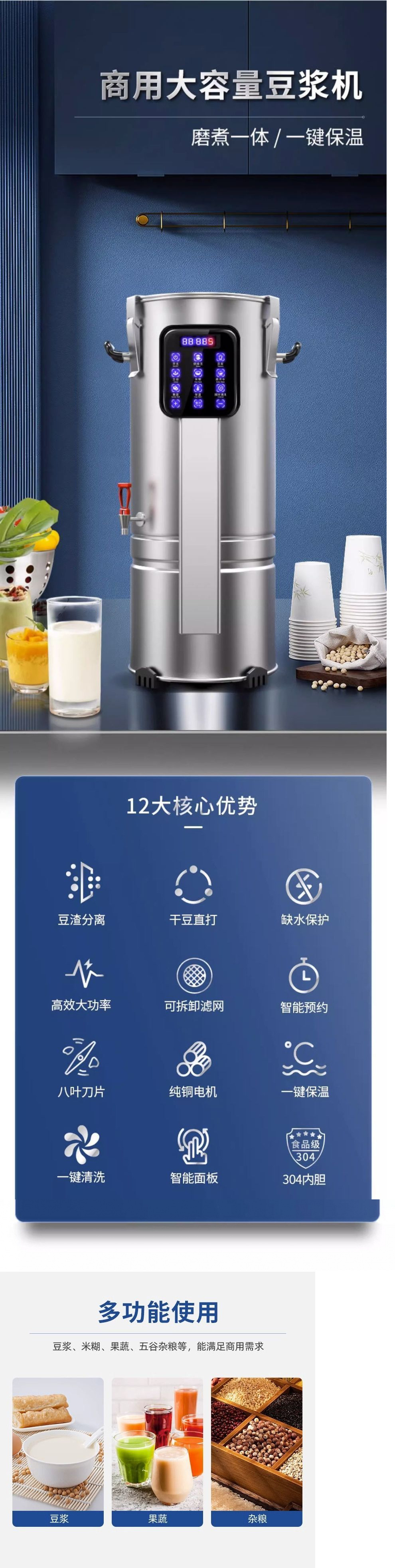 완전 자동 연삭 및 끓는 통합 필터가없는 대규모 대두 우유 기계 상업용 아침 식사 상점 대용량 정유 연삭