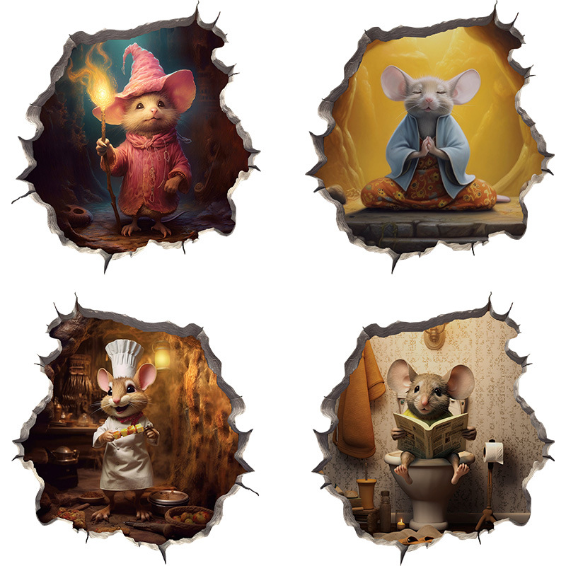 3D 벽 스티커 pvc 치즈 마우스 구멍 스커트 거실 침실 어린이 방 만화 장식 스티커 자체 붙여 넣기 꽃