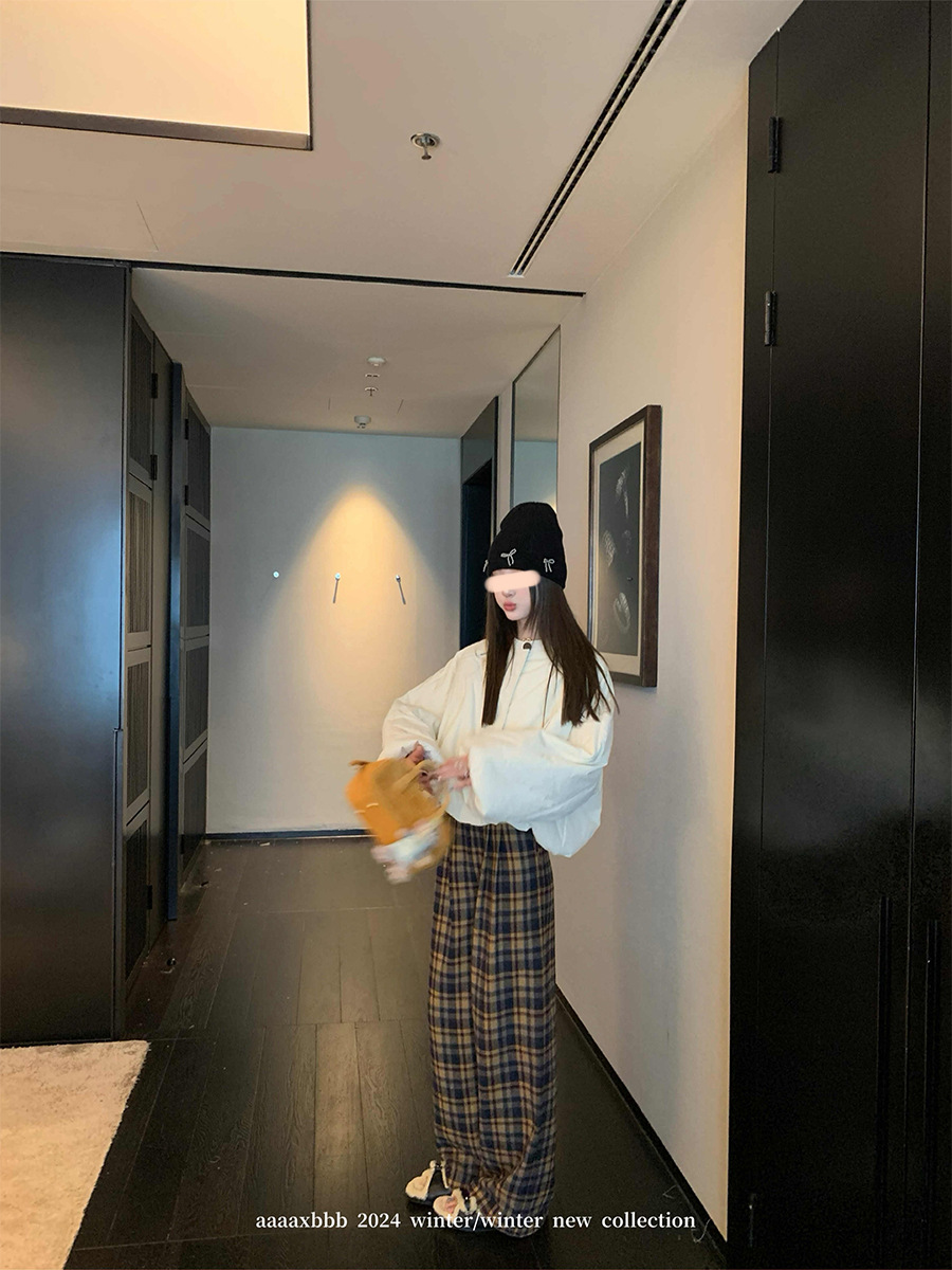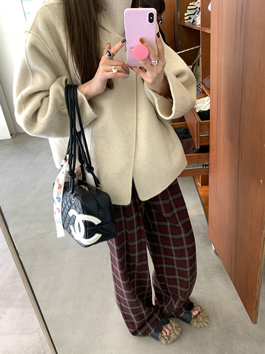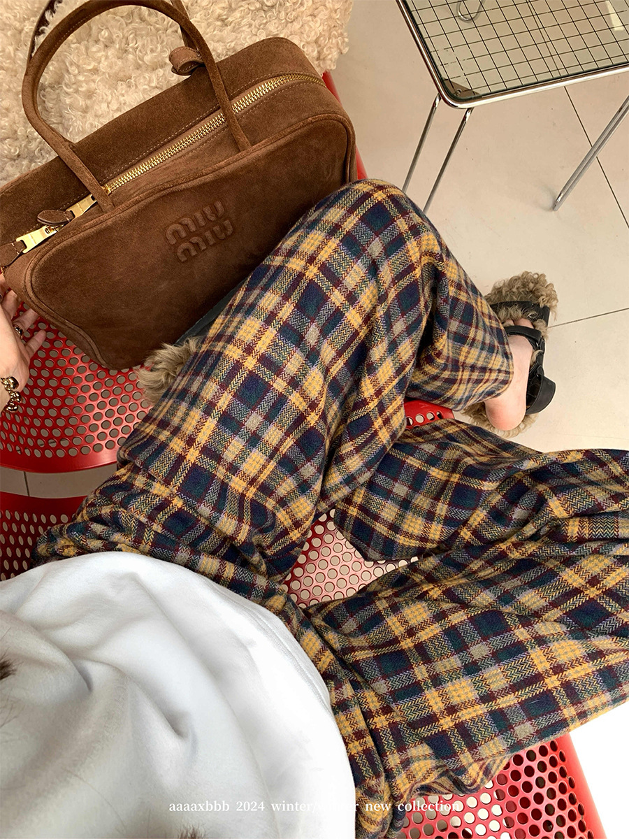 Aaaaxbb 휴일 분위기 울 격자 무늬 바지 느슨한 게으른 스타일 스트레이트 다리 바지 올 매치 캐주얼 바지