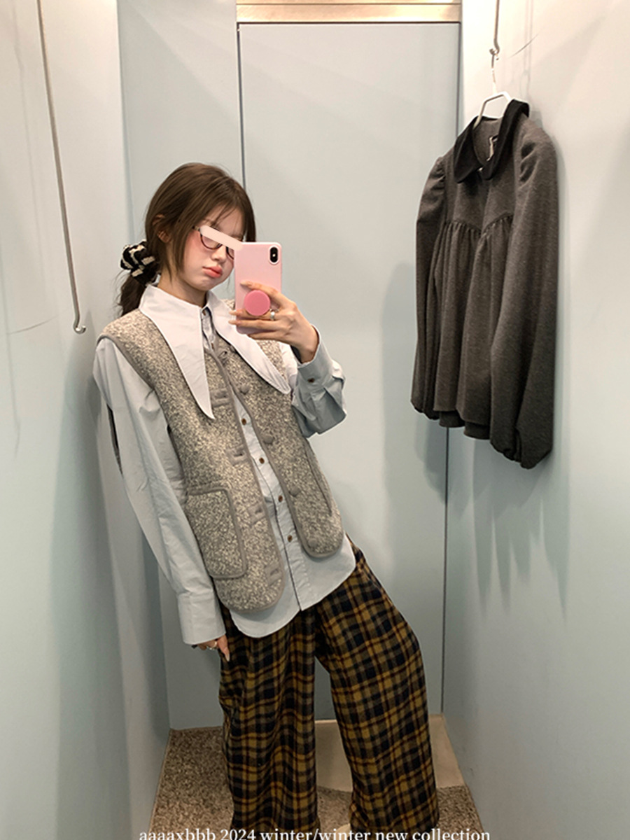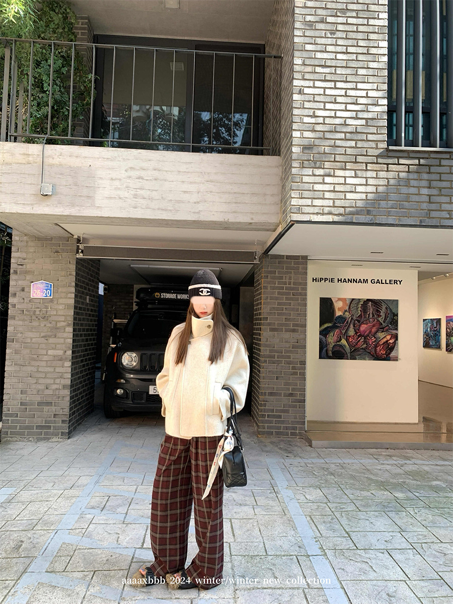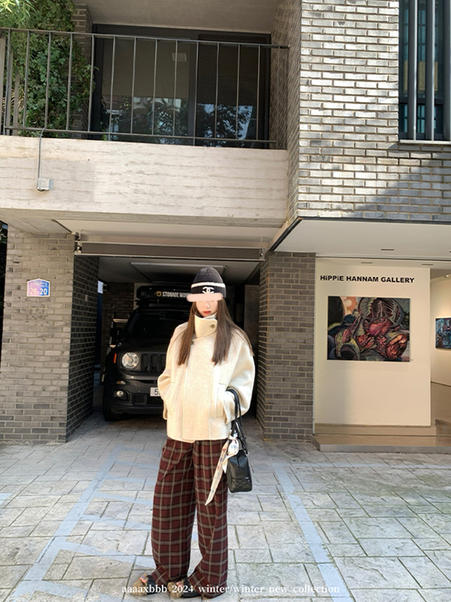 Aaaaxbb 휴일 분위기 울 격자 무늬 바지 느슨한 게으른 스타일 스트레이트 다리 바지 올 매치 캐주얼 바지