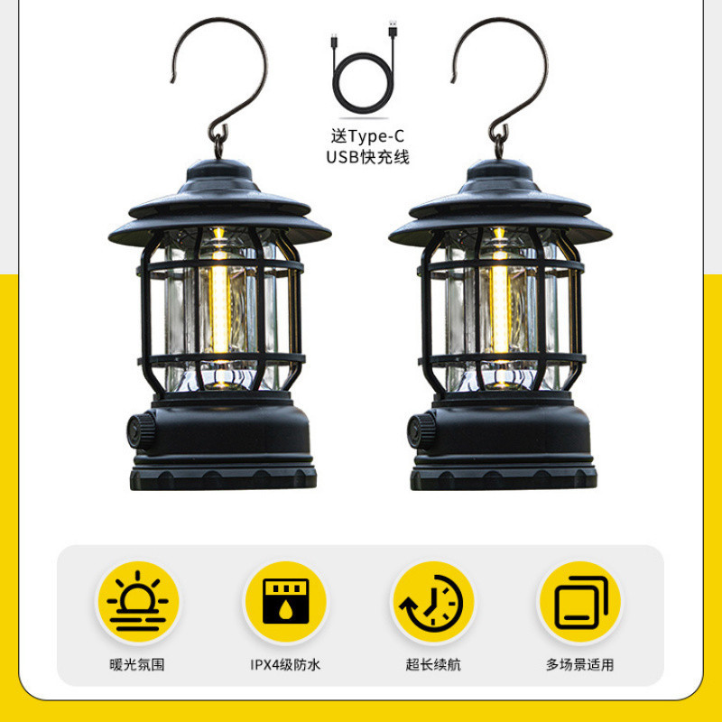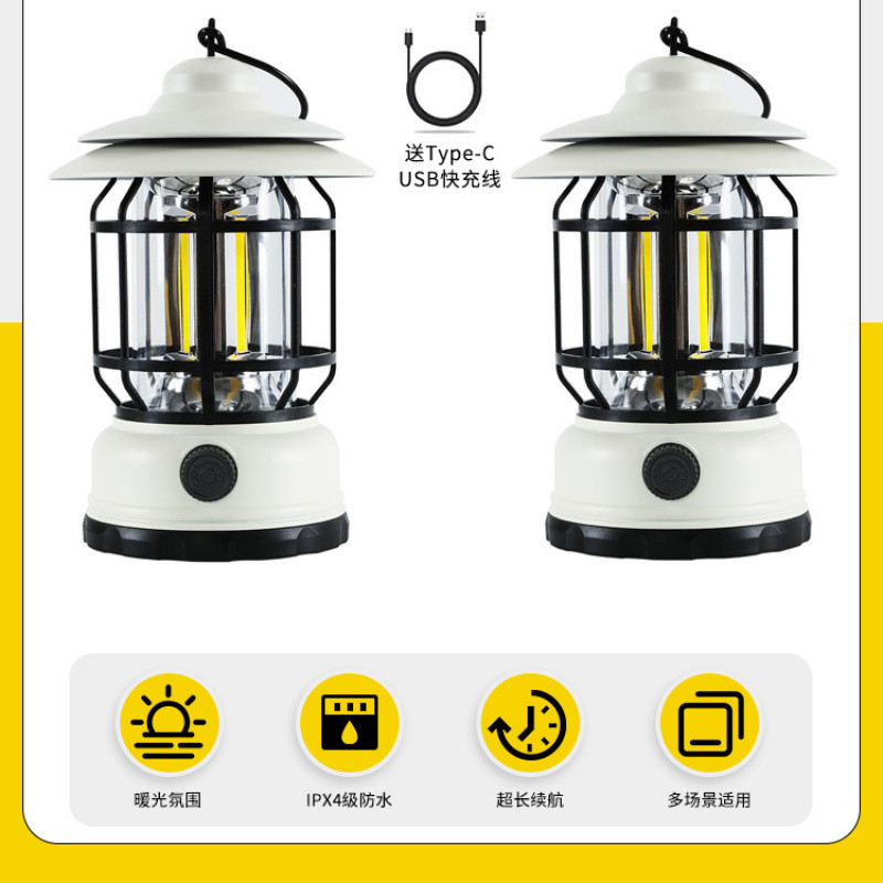 야외 레트로 캠핑 조명 야외 전문 등급 충전 LED 스톨 야시장 조명 긴 내구성 휴대용 따뜻한 조명