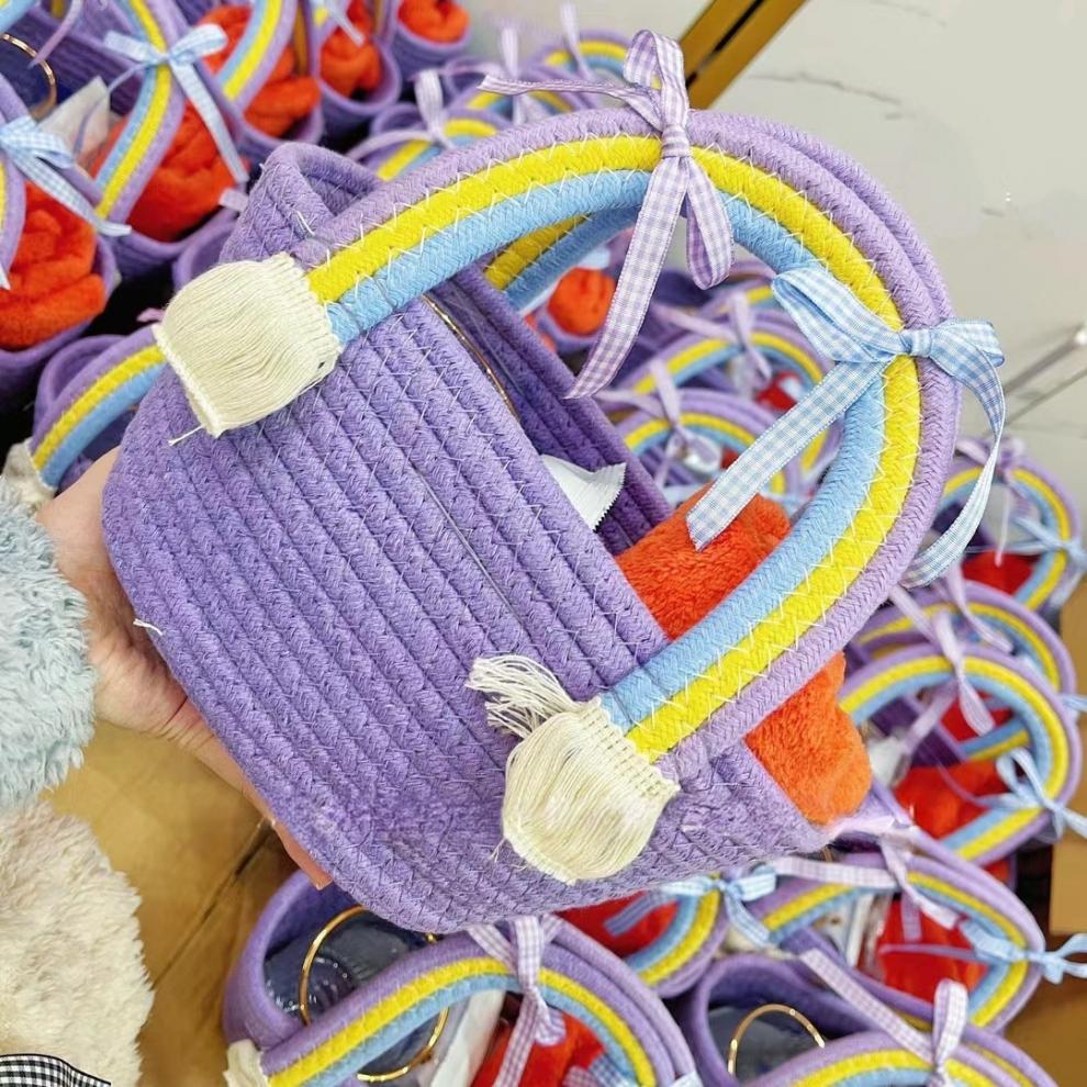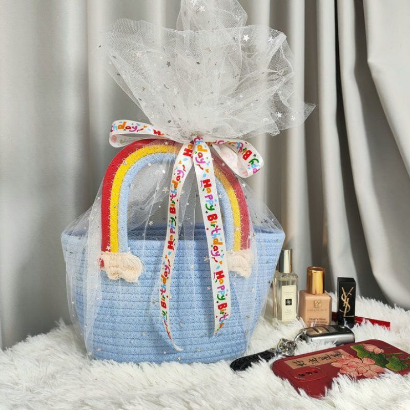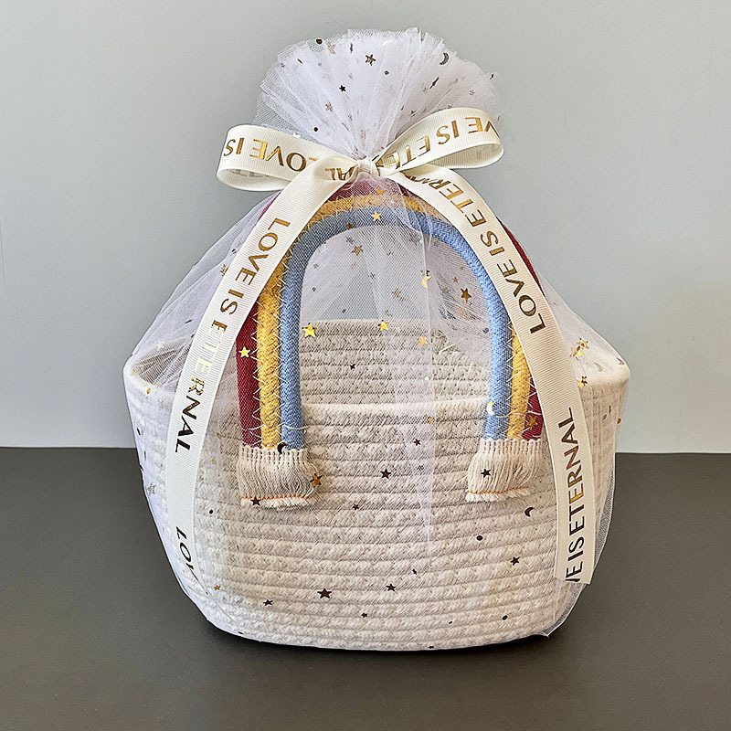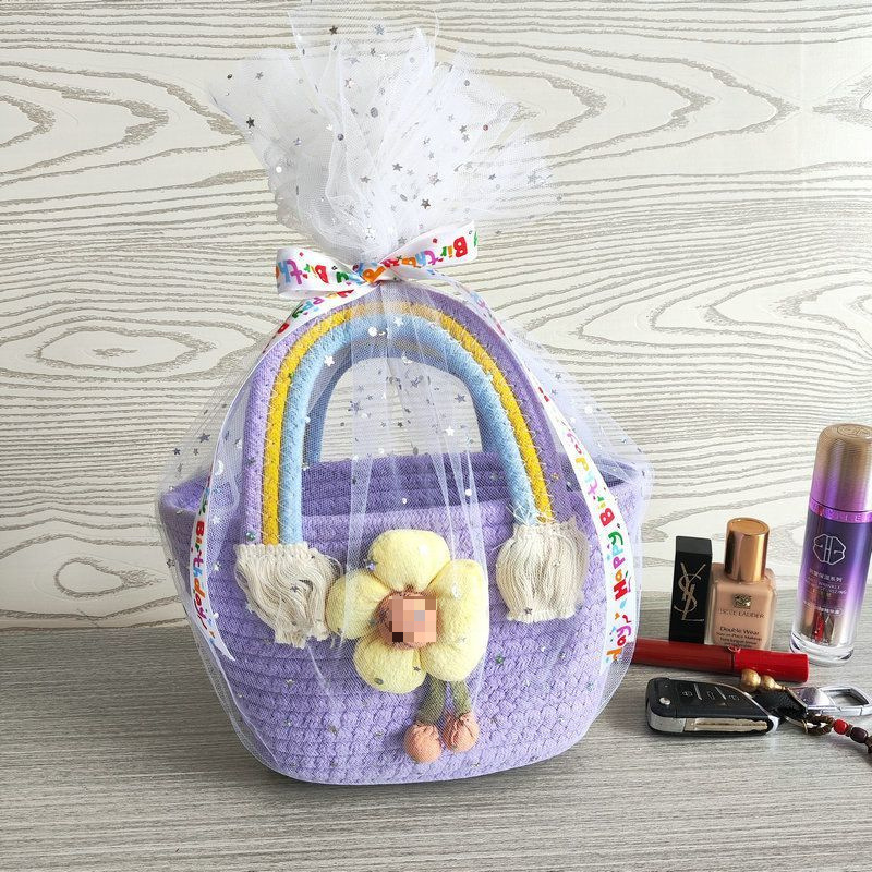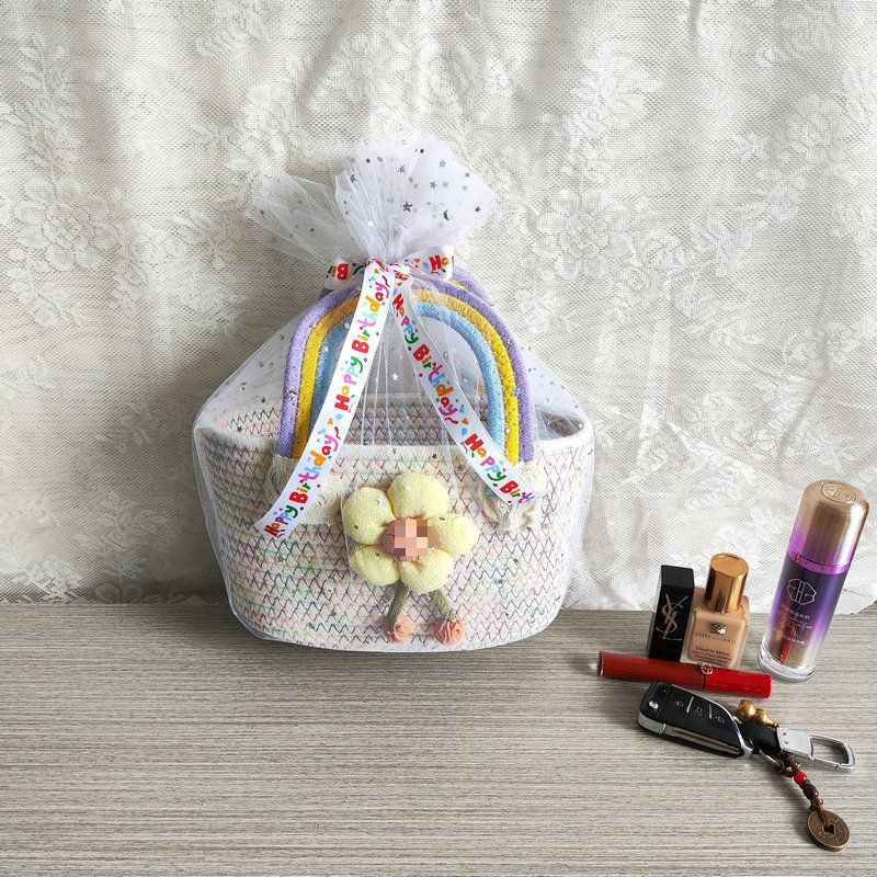 무지개 구름 가방 면화 로프 보관 바구니 휴대용 어린이 생일 선물 바구니 아기 보름달 선물 가방