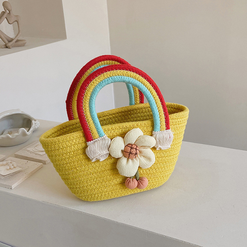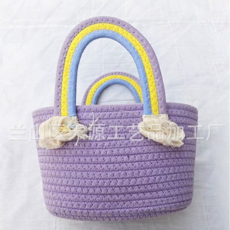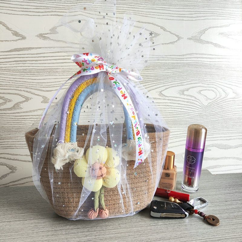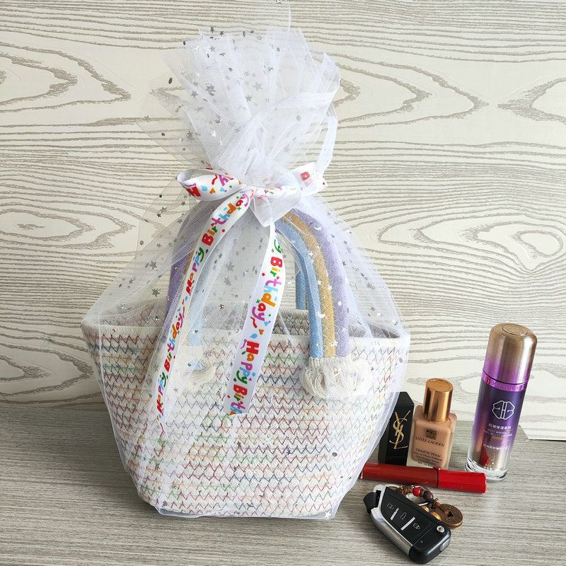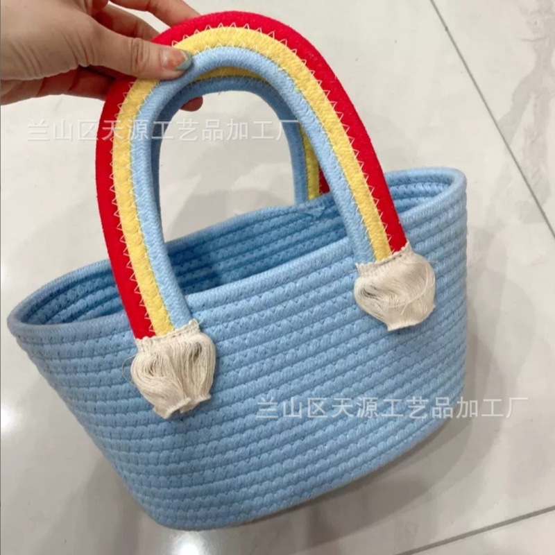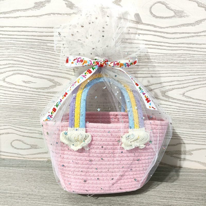 무지개 구름 가방 면화 로프 보관 바구니 휴대용 어린이 생일 선물 바구니 아기 보름달 선물 가방