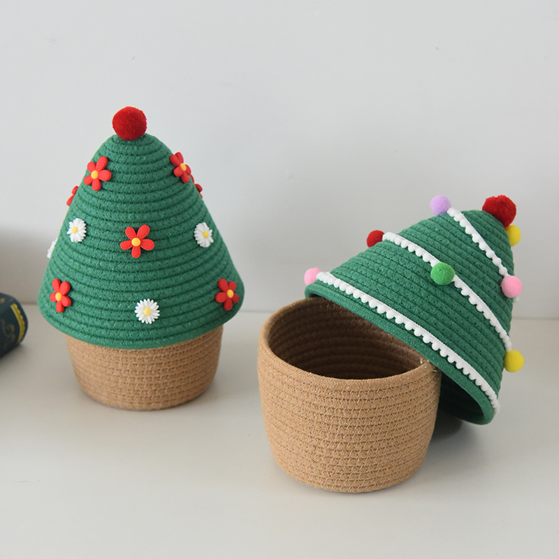 데스크탑 면사로 짠 열쇠 및 리모컨 보관함, 화장품 보관함, 뚜껑이 있는 크리스마스 현관 장식