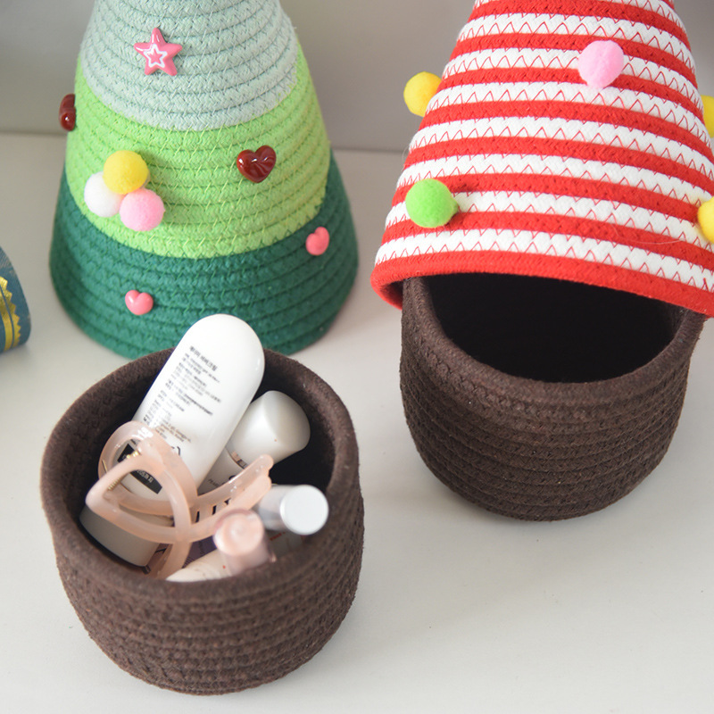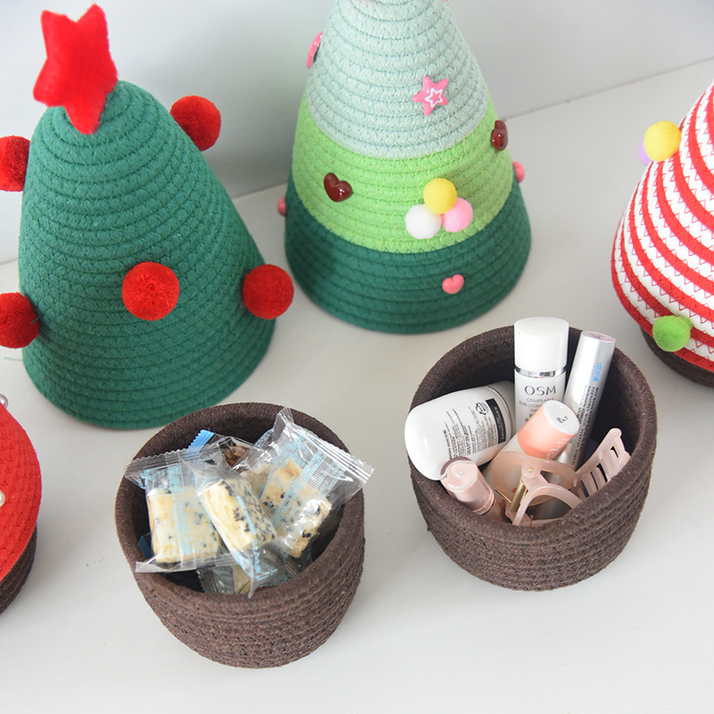 데스크탑 면사로 짠 열쇠 및 리모컨 보관함, 화장품 보관함, 뚜껑이 있는 크리스마스 현관 장식스토어 가기