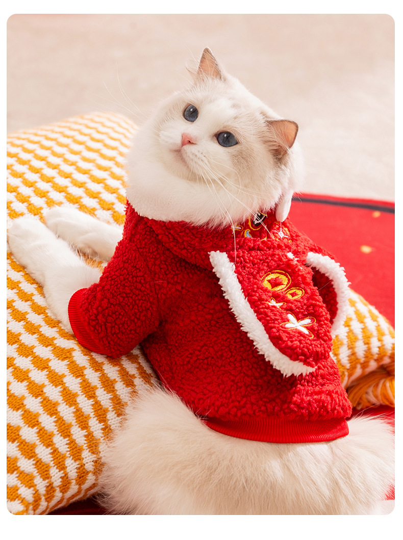 고양이 가을과 겨울 큰 귀 두 다리 벨벳 옷 새해 축제 개 테디 중소 개 새해 애완 동물 옷