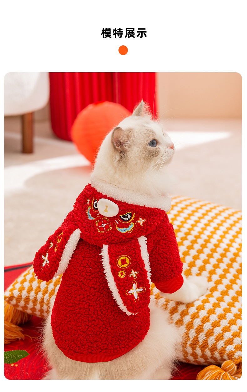 고양이 가을과 겨울 큰 귀 두 다리 벨벳 옷 새해 축제 개 테디 중소 개 새해 애완 동물 옷스토어 가기