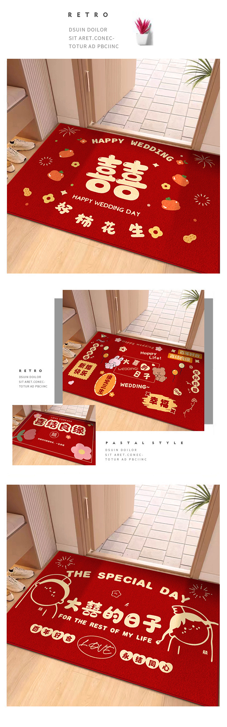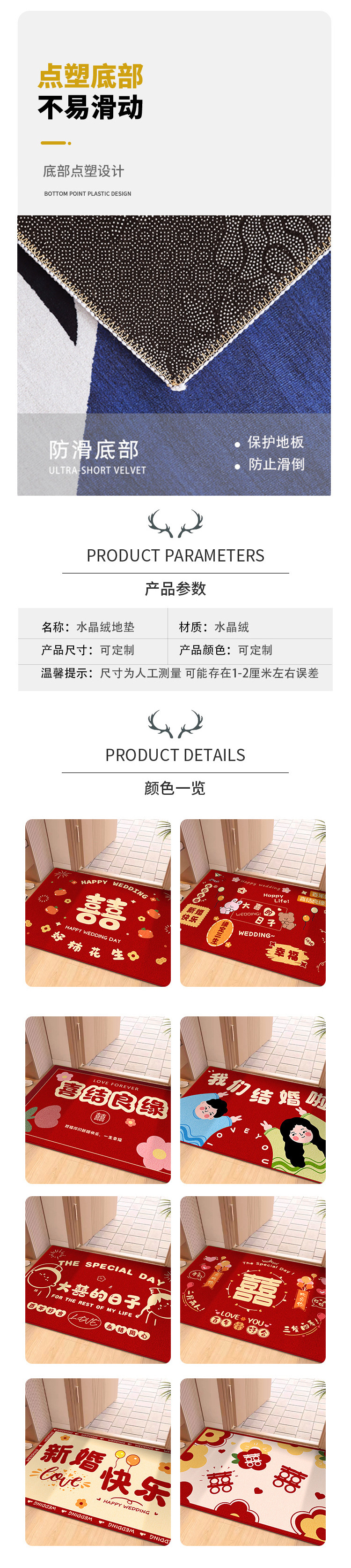 웨딩 룸 레이아웃 크리스탈 벨벳 레드 카펫 웨딩 레드 축제 웨딩 플로어 매트 홈 도어 입구 바닥 매트스토어 가기