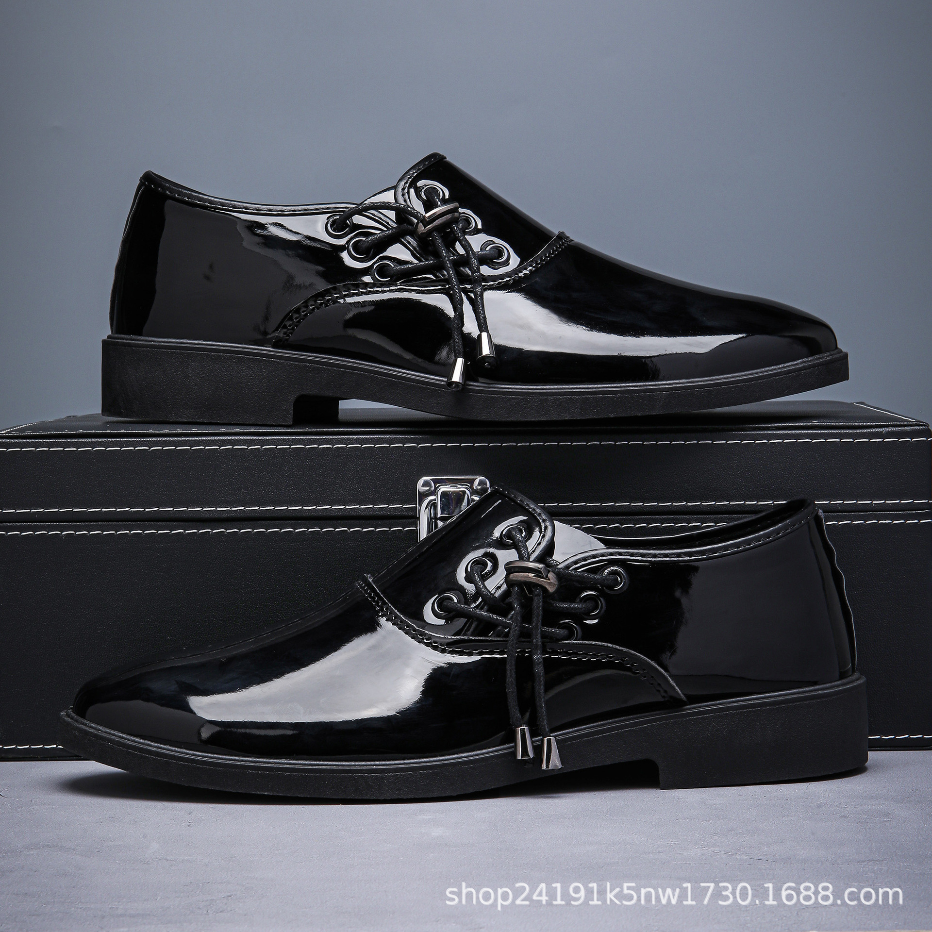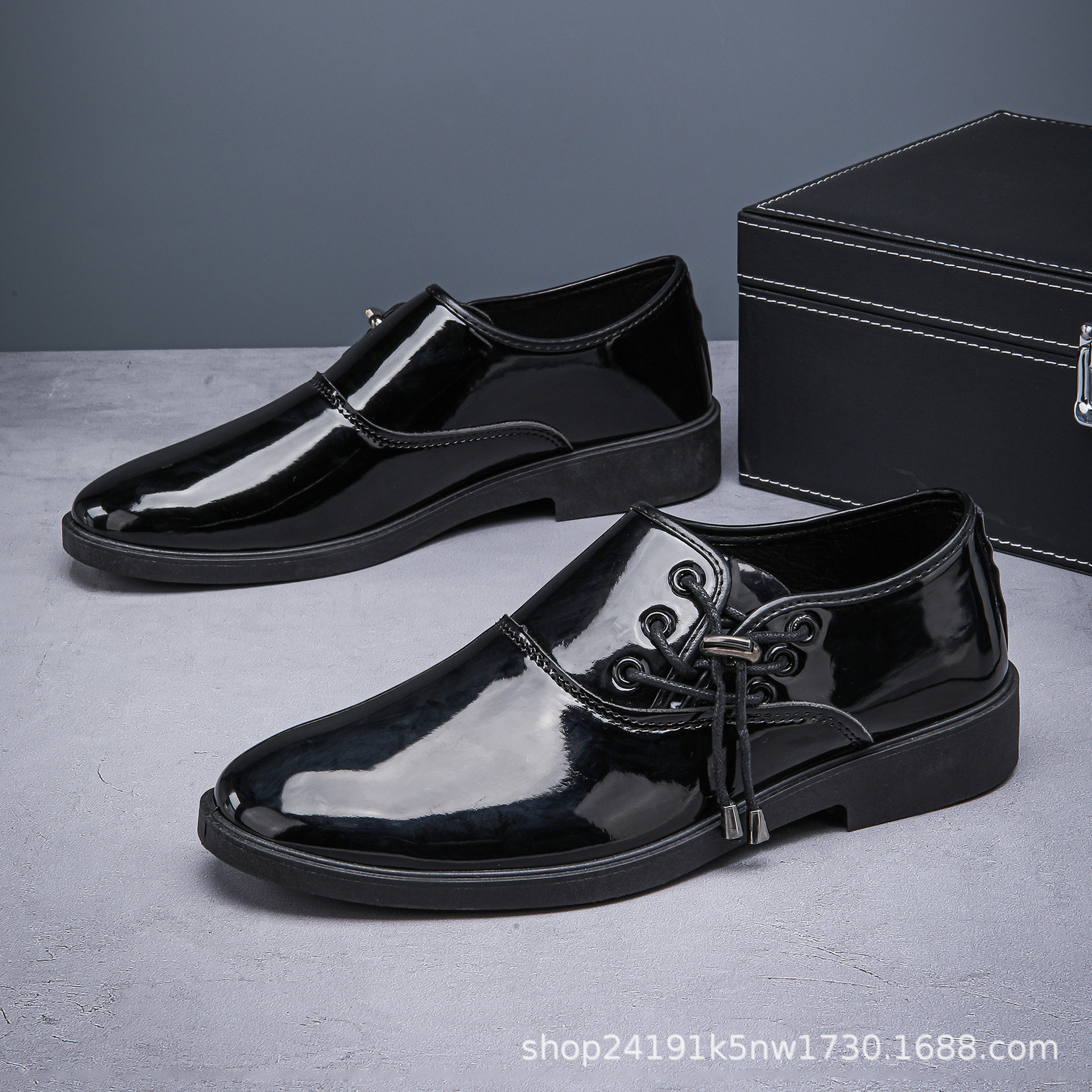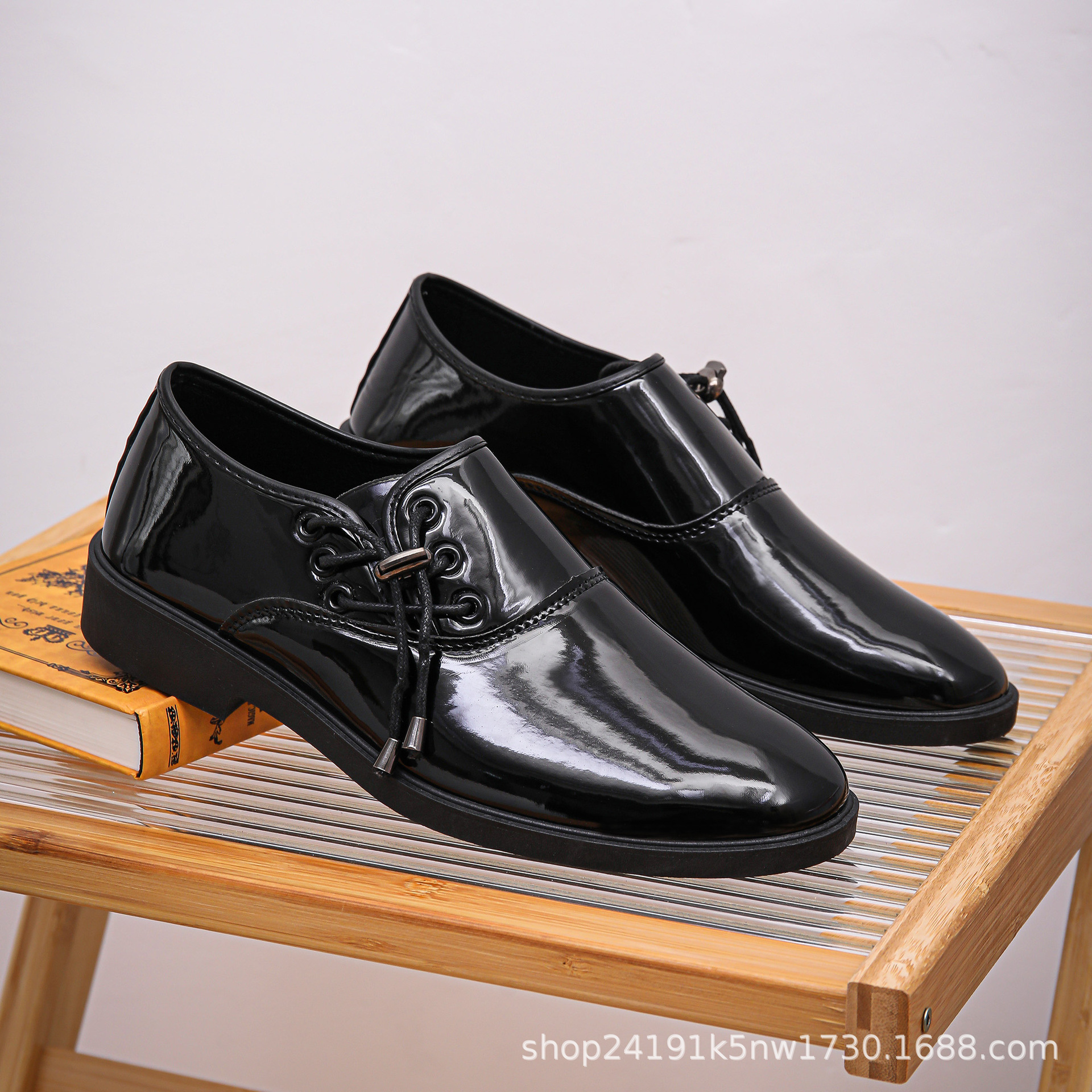 가죽 신발 남성 비즈니스 원피스 영국 캐주얼 밝은 특허 가죽 신발 청소년 작업 국경 무역 유행 가죽 신발