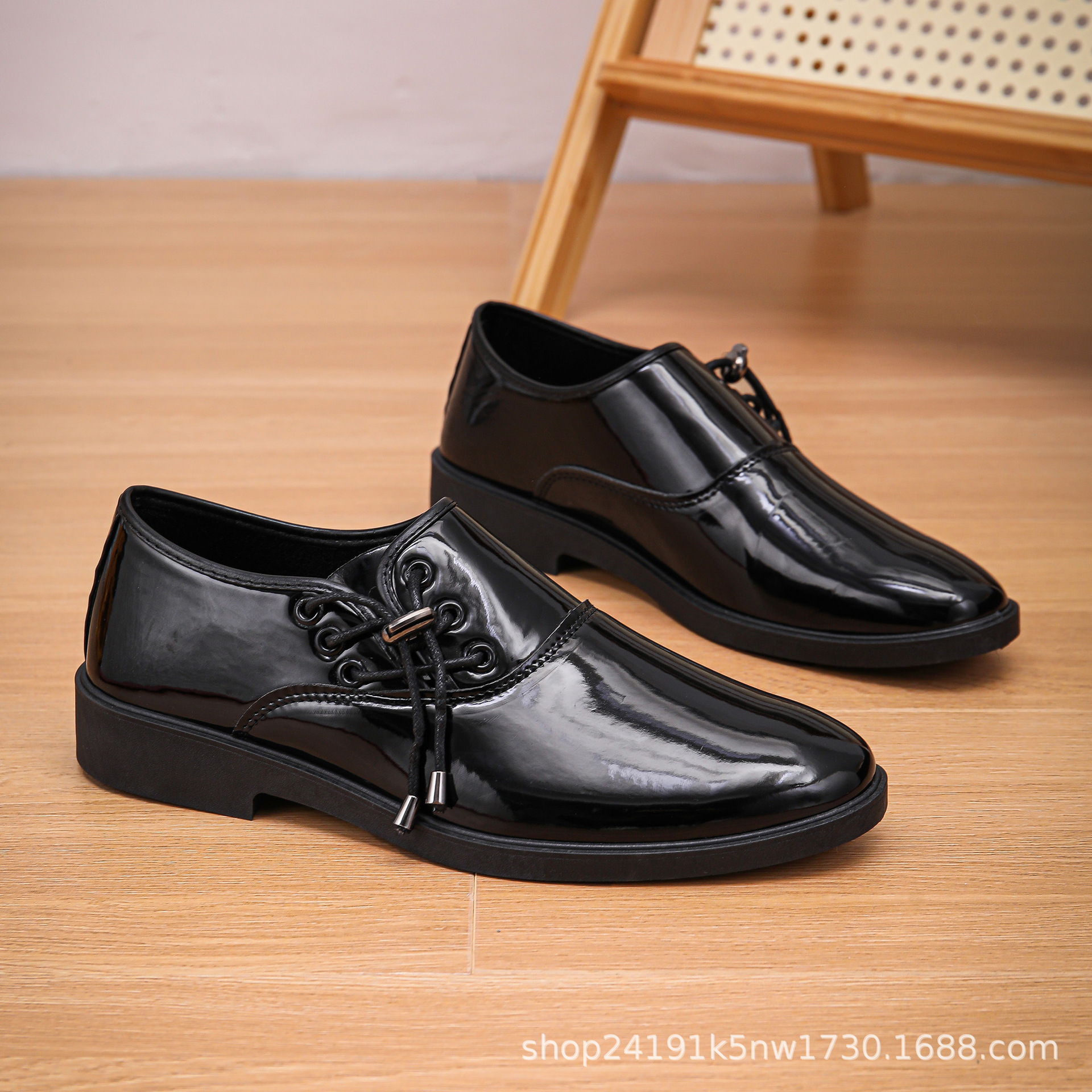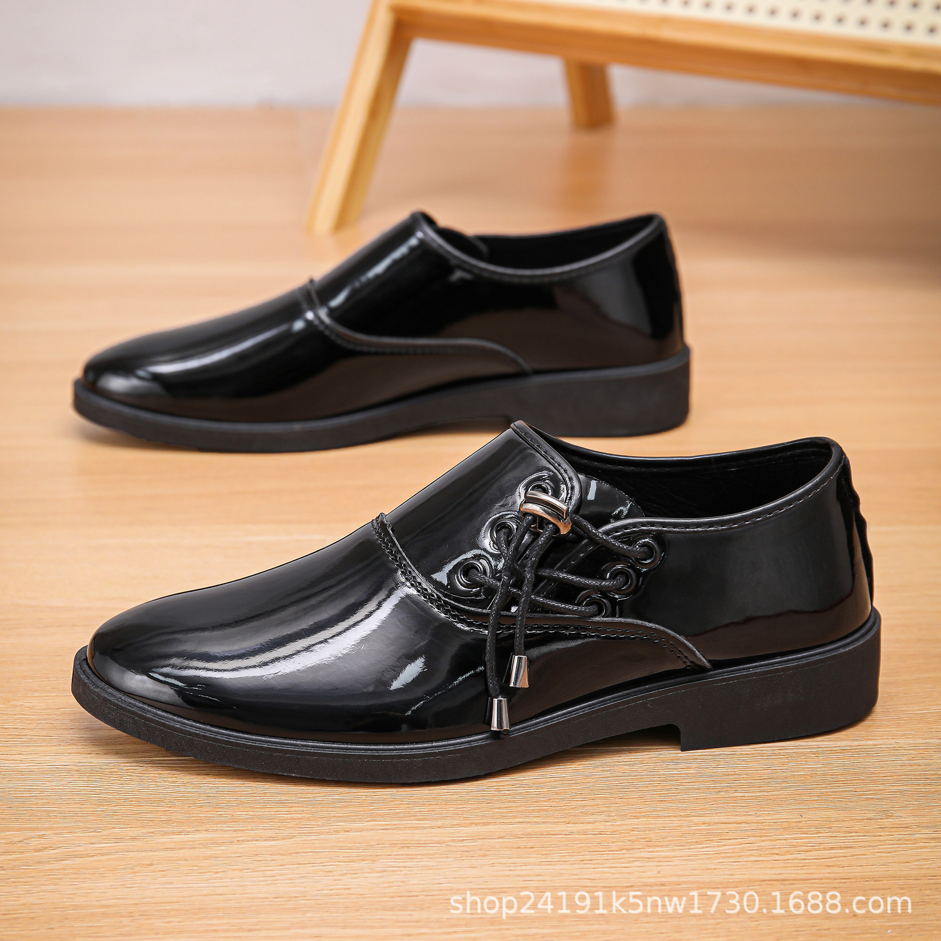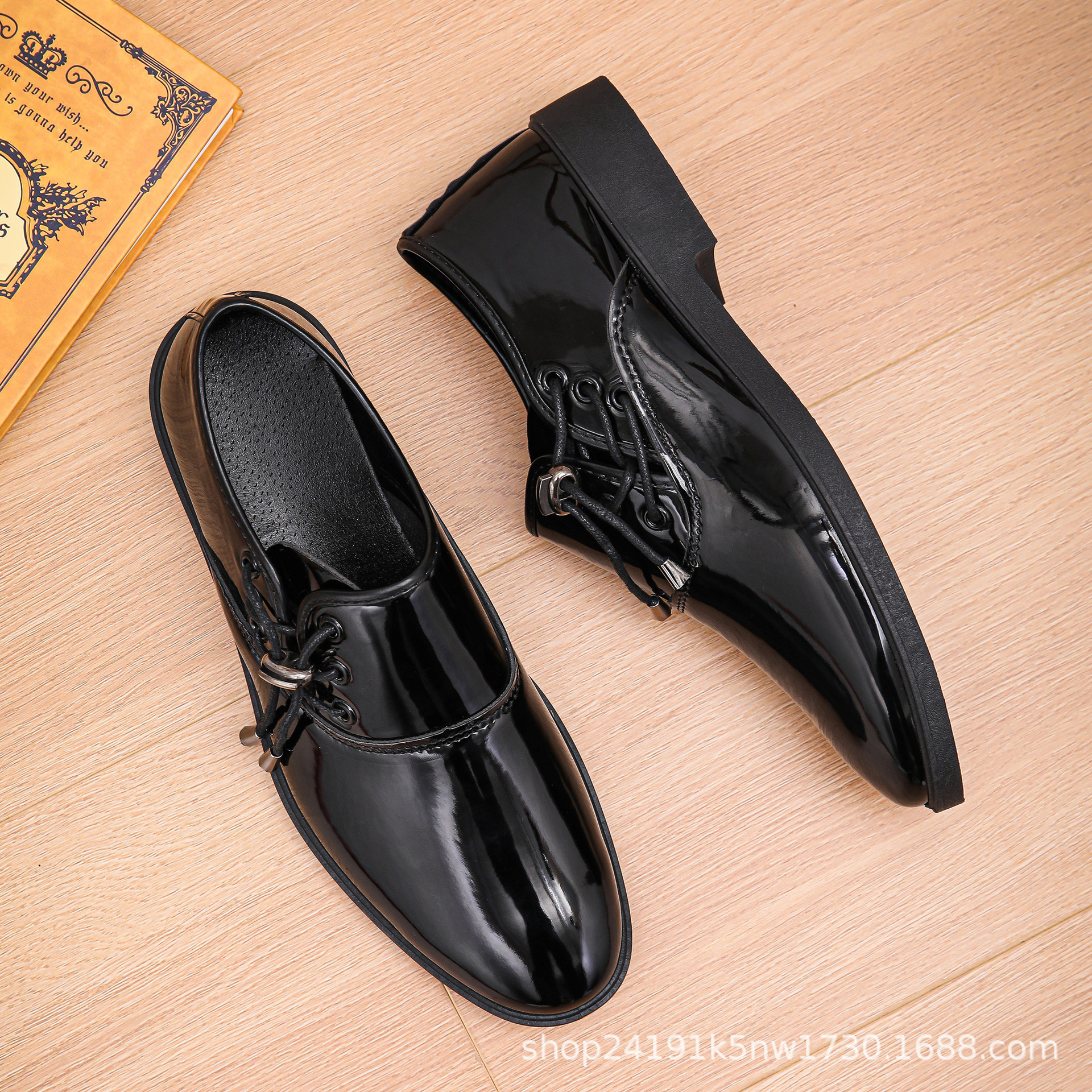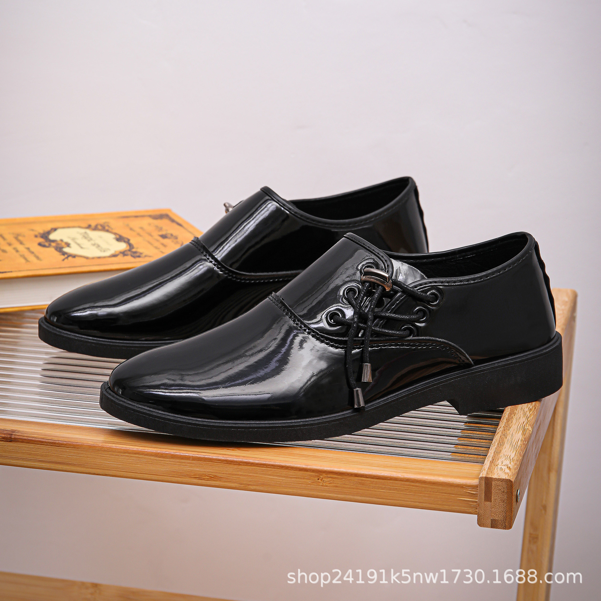 가죽 신발 남성 비즈니스 원피스 영국 캐주얼 밝은 특허 가죽 신발 청소년 작업 국경 무역 유행 가죽 신발