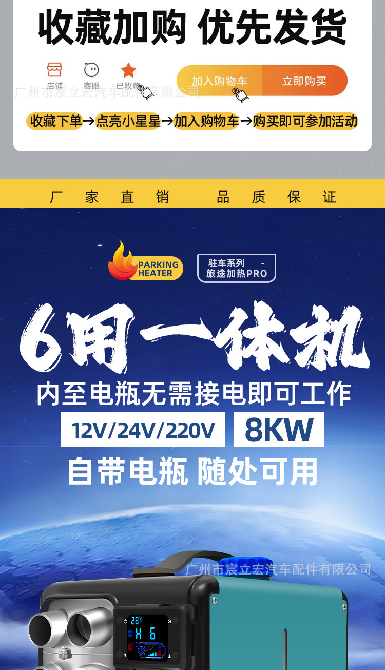 6 주차 히터 올인원 기계 12V24V 220V 하이 엔드 휴대용 모바일 자동차 난방 목재 히터 사용스토어 가기