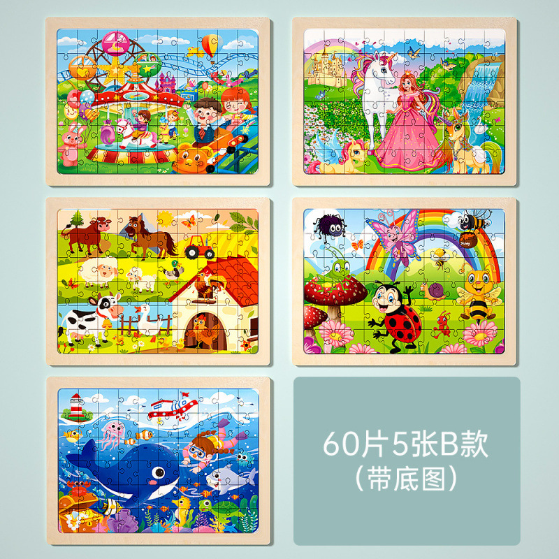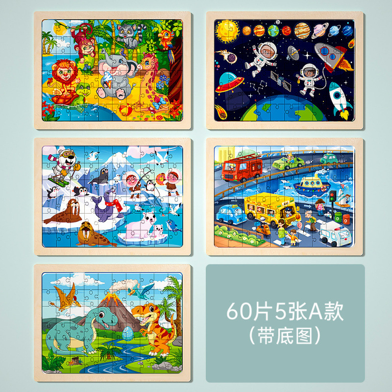 나무 60 조각 직소 동물 공룡 멀티 테마 두꺼운 평면 직소 퍼즐 어린이 교육 마구간 장난감 도매스토어 가기