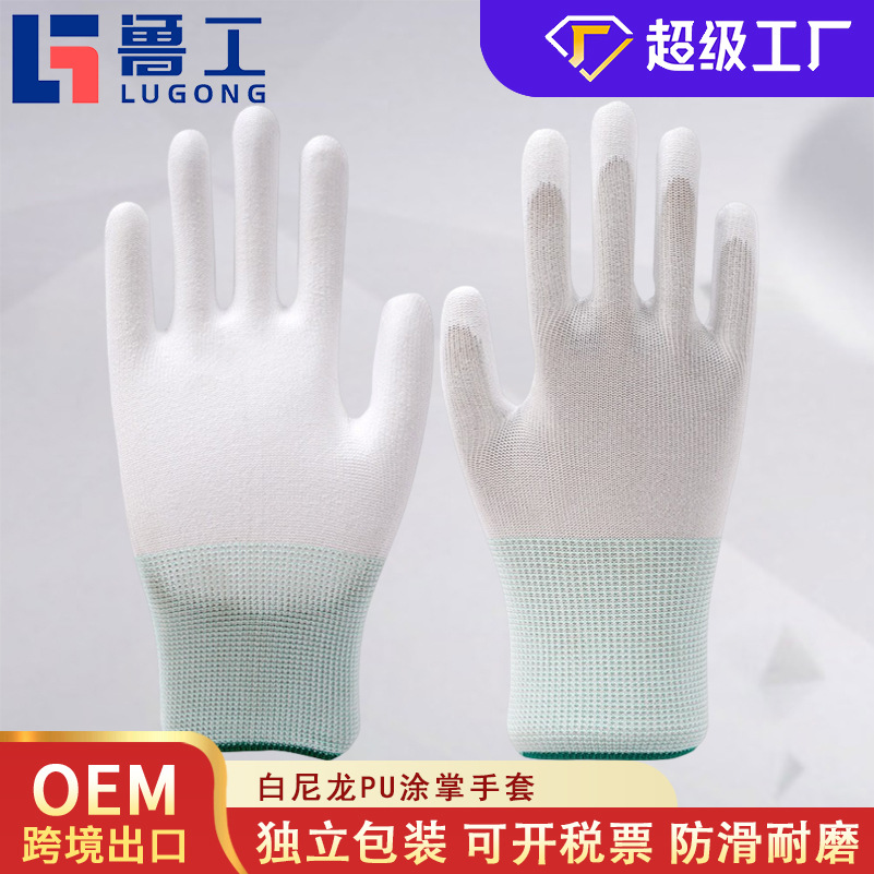 흰색 PU 코팅 팜 장갑 개별적으로 포장 된 나일론 내마모성 노동 장갑 도매 정전기 방지 코팅 팜 장갑 H7스토어 가기