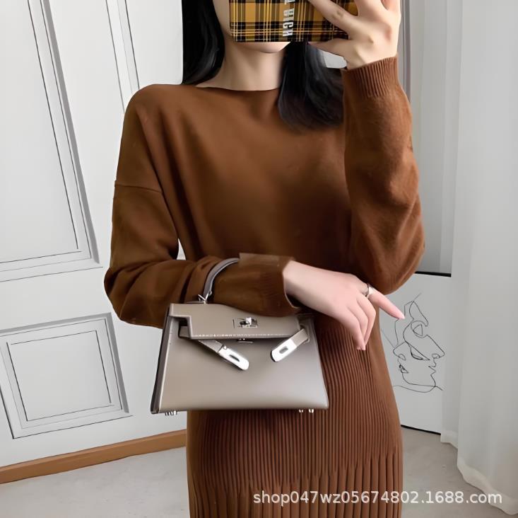 2025 가을 겨울 패션 올 매치 카우히드 하이 엔드 텍스처 켈리 미니 어깨 크로스 바디 핸드백