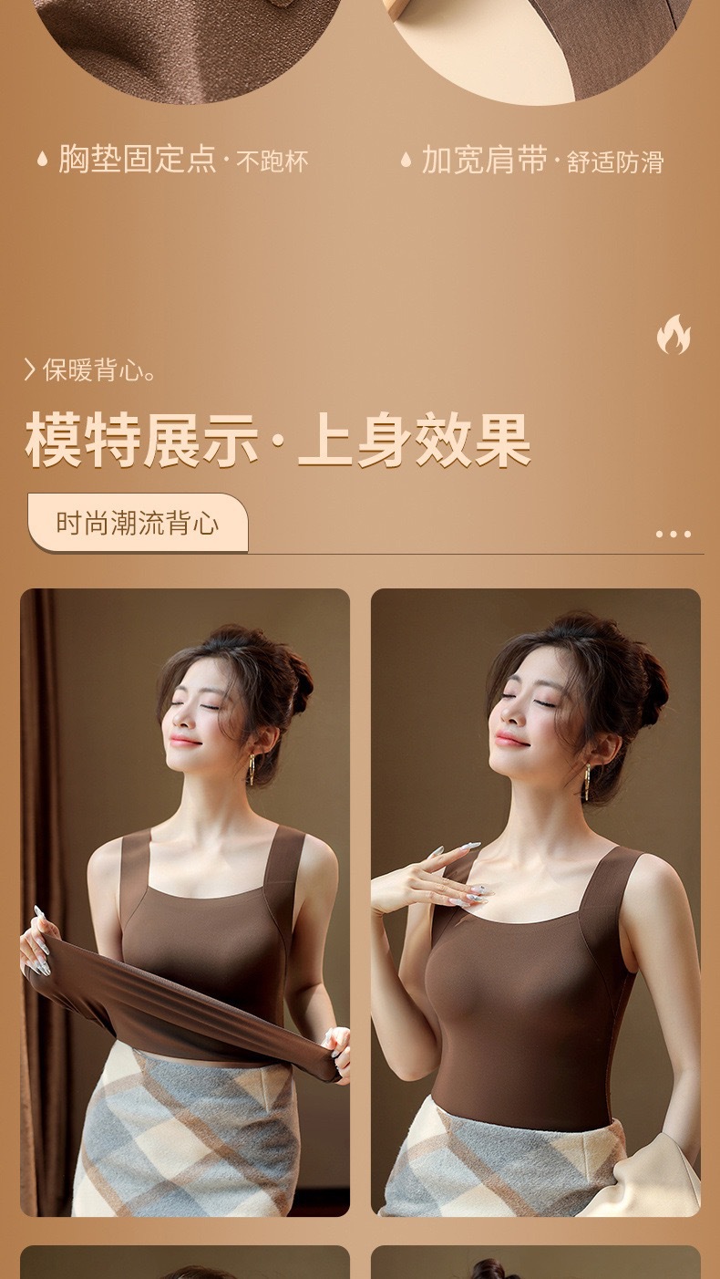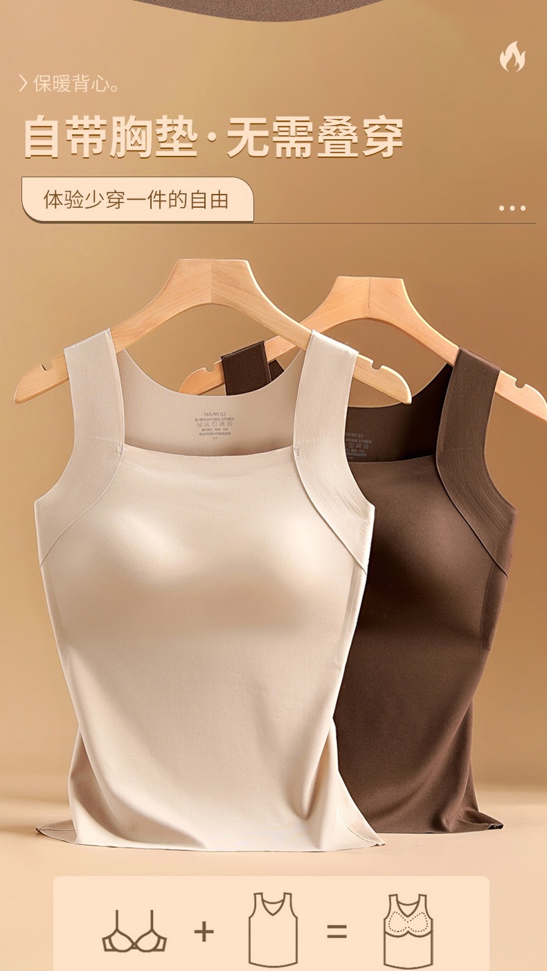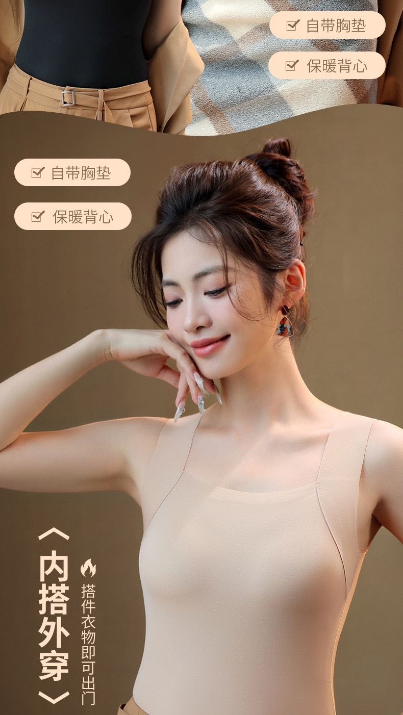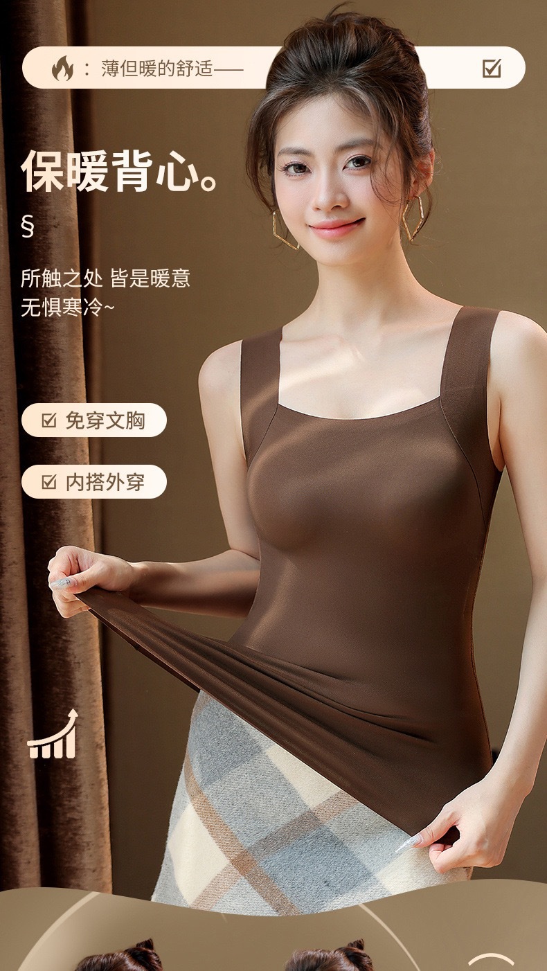 가을과 겨울 추적없는 구름 벌거 벗은 근육베이스 옷 따뜻한 조끼 여성 고정 컵 스킨 뷰티 옷베이스 가을 옷 따뜻한 조끼