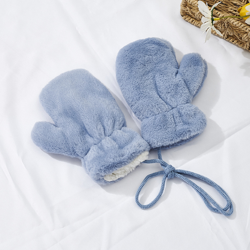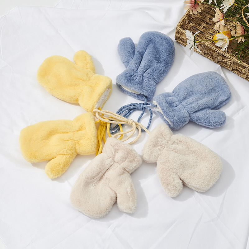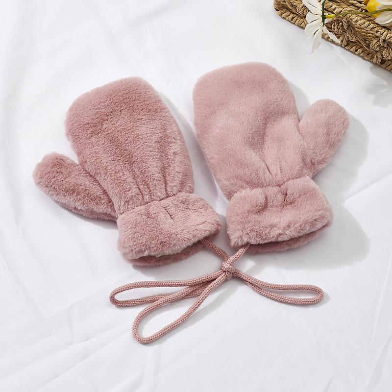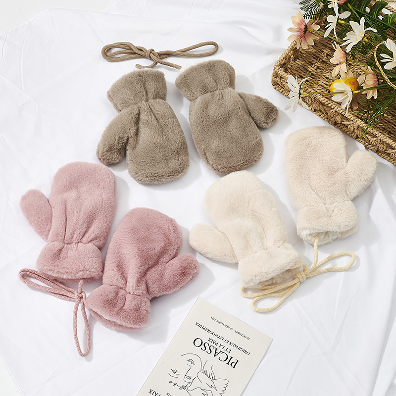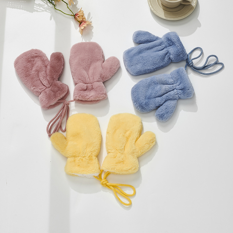 가을과 겨울 새로운 한국식 솔리드 컬러 어린이 봉제 장갑 라이트 패널 따뜻한 두꺼운 홀터 장갑스토어 가기