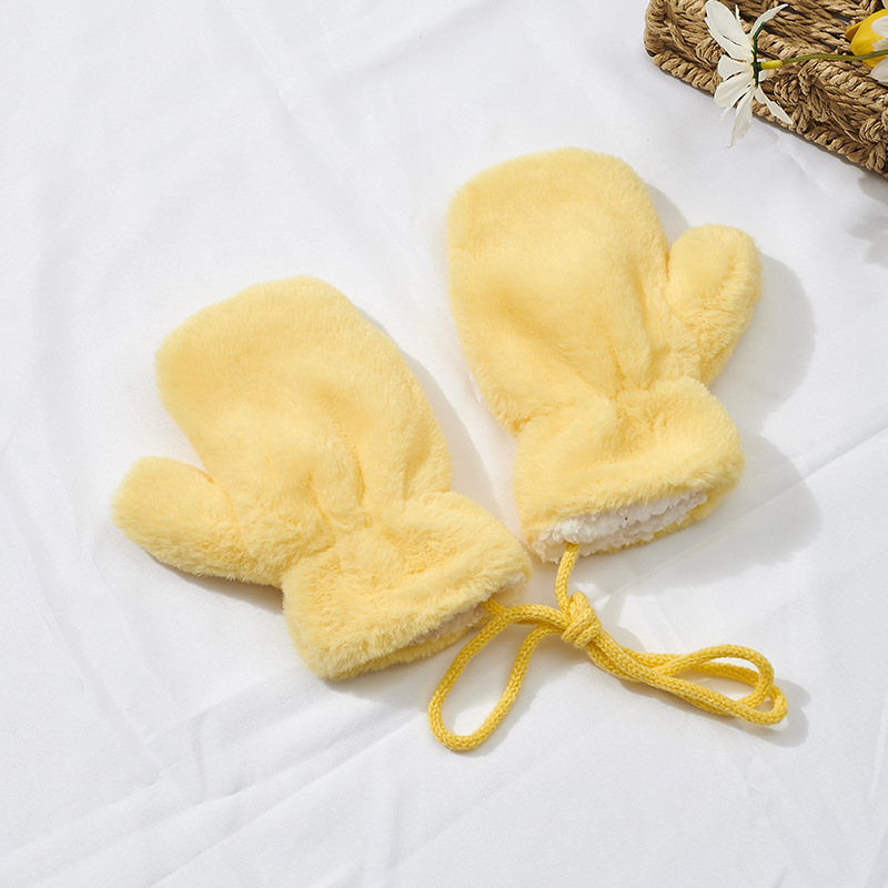 가을과 겨울 새로운 한국식 솔리드 컬러 어린이 봉제 장갑 라이트 패널 따뜻한 두꺼운 홀터 장갑