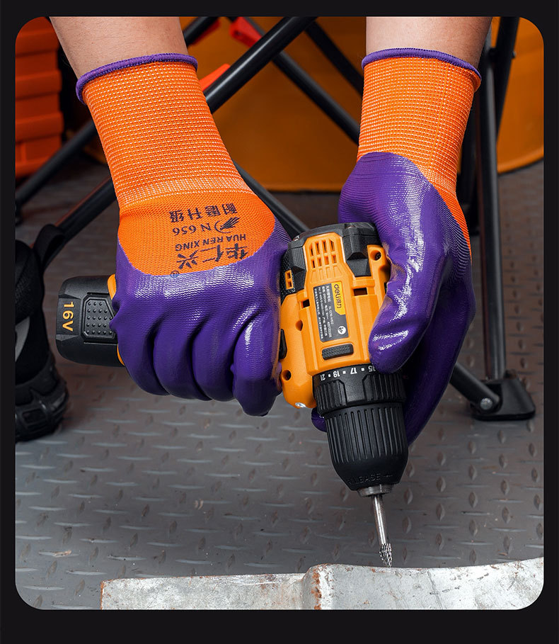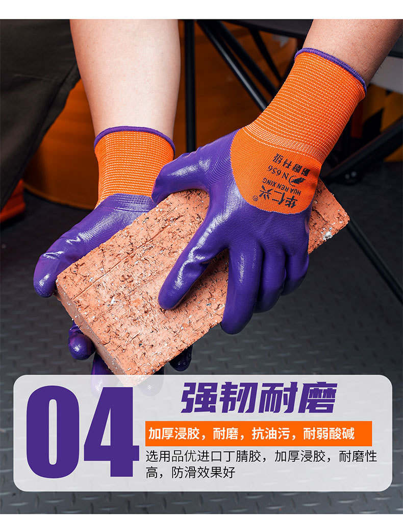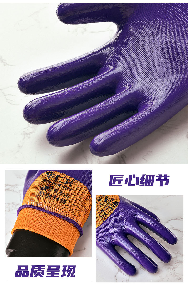 미끄럼 방지 13 핀 나일론 니트릴 고무 담근 보호 장갑 두꺼운 고무 담근 층 내유성 보호 장갑스토어 가기