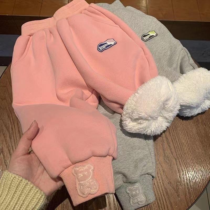 어린이 바지 여자 캐주얼 바지 가을 겨울 기모 두꺼운 따뜻한 바지 2024 새로운 아기 바지 캐주얼 스포츠