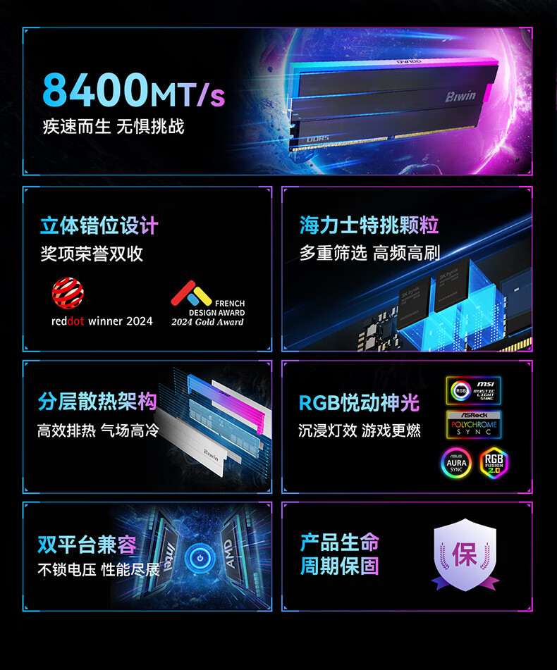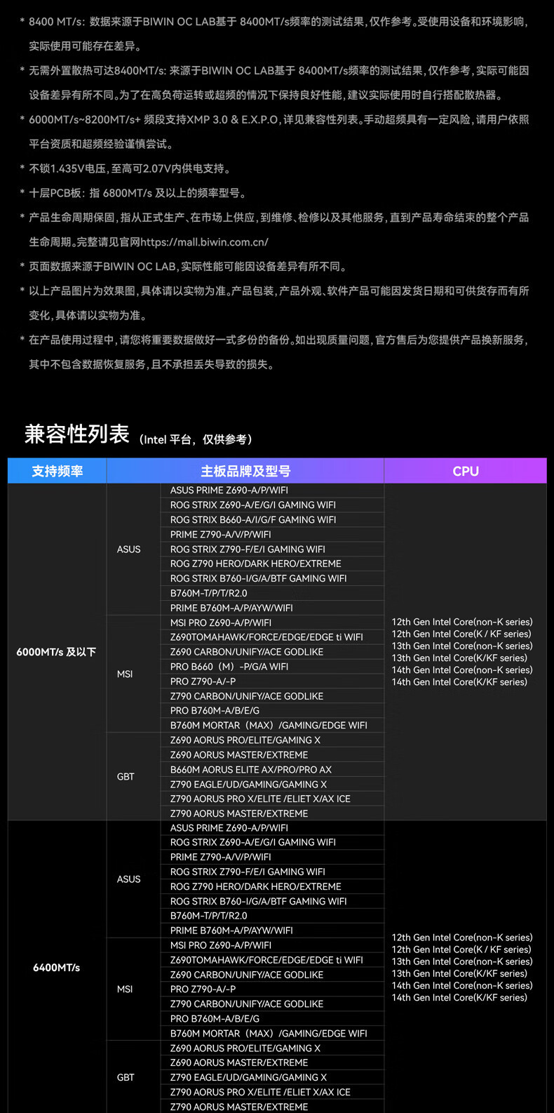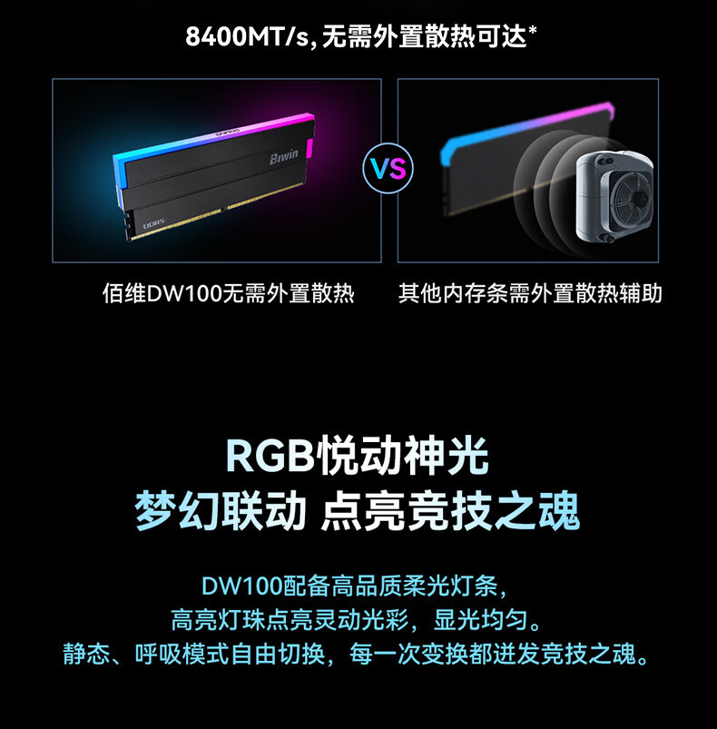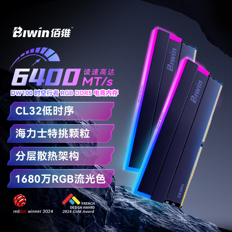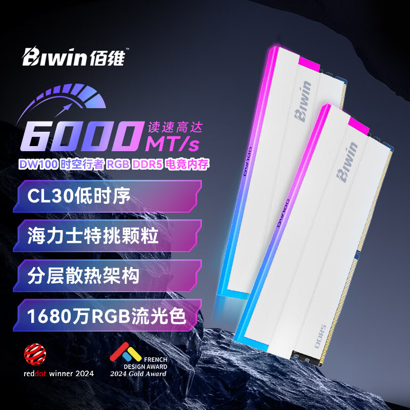 Biwei 32G(16G × 2) 세트 DDR5 6000 6400 주파수 데스크톱 메모리 모듈 DW100 라이트 바스토어 가기