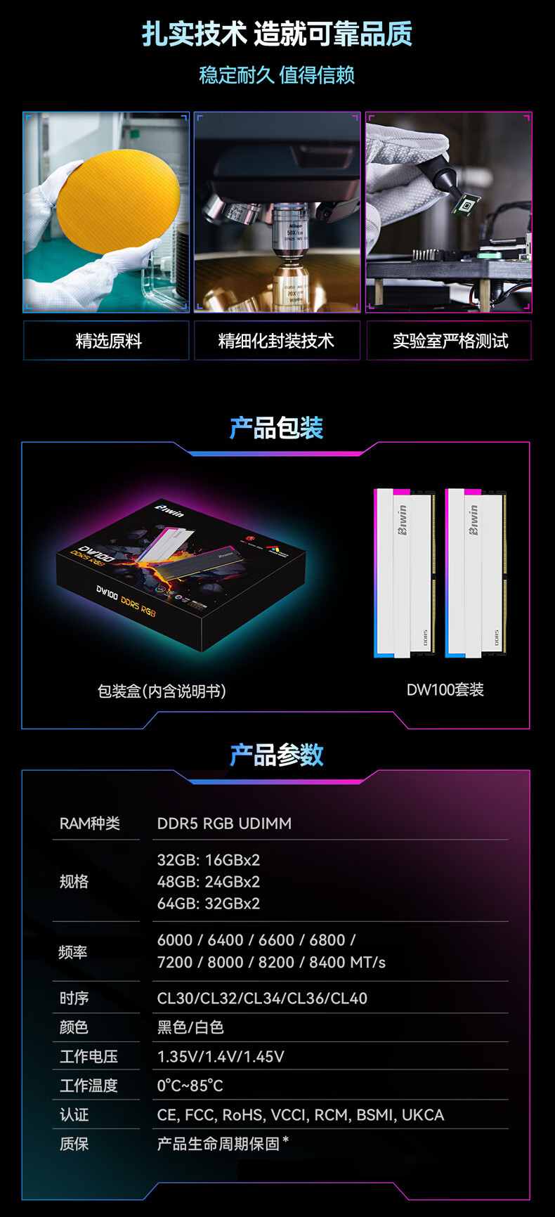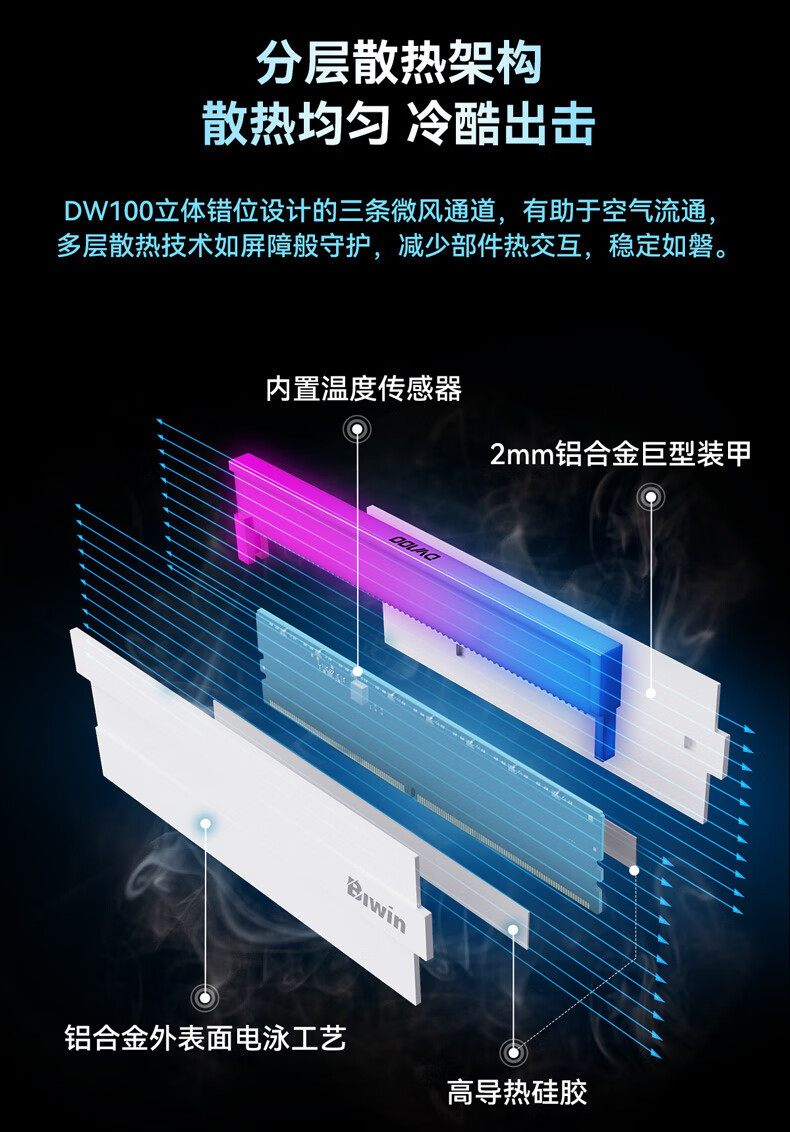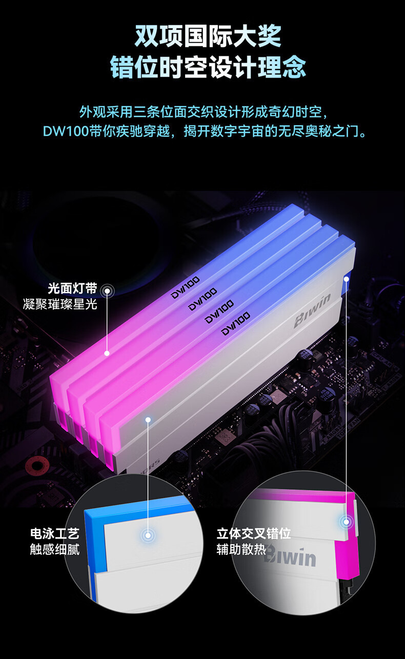 Biwei 32G(16G × 2) 세트 DDR5 6000 6400 주파수 데스크톱 메모리 모듈 DW100 라이트 바